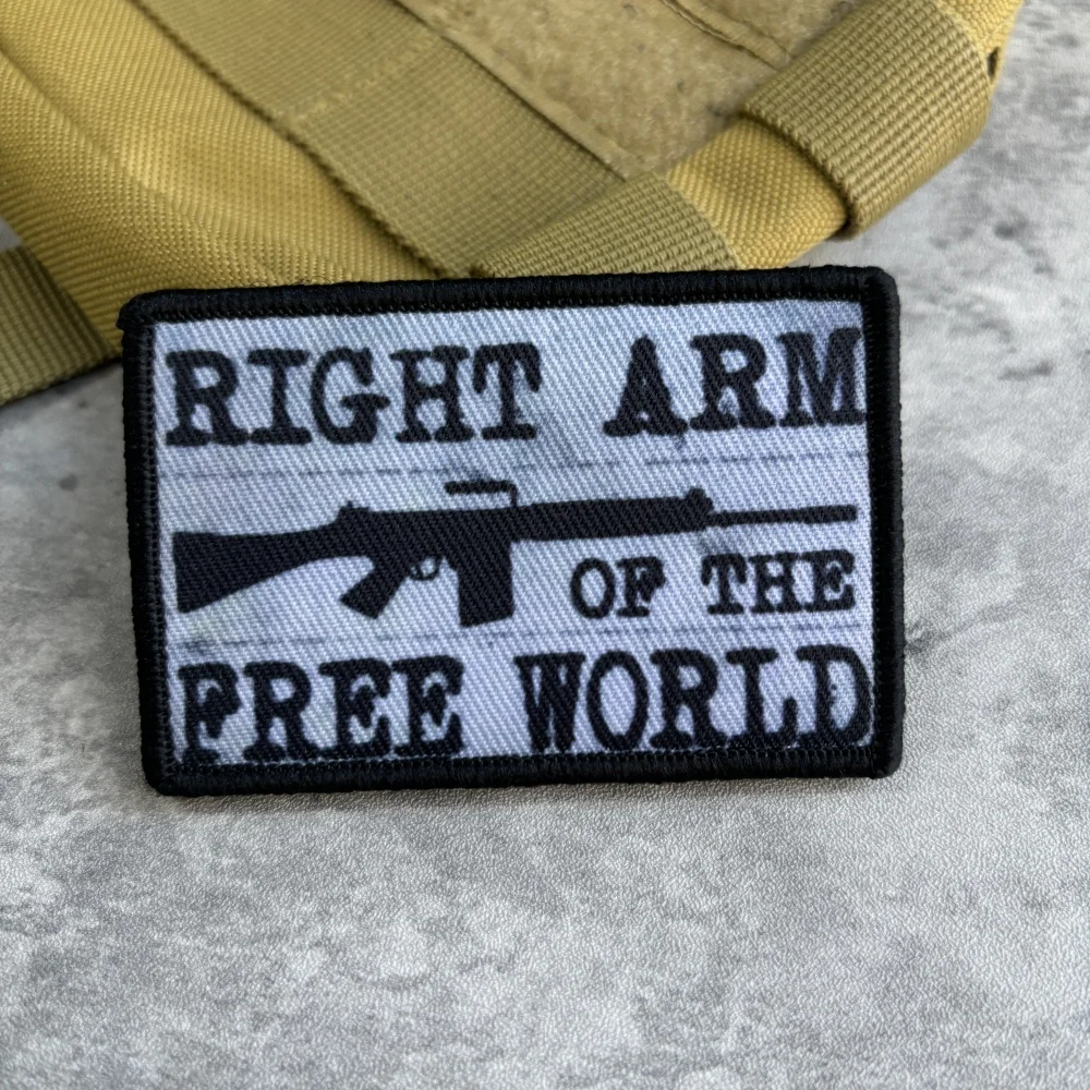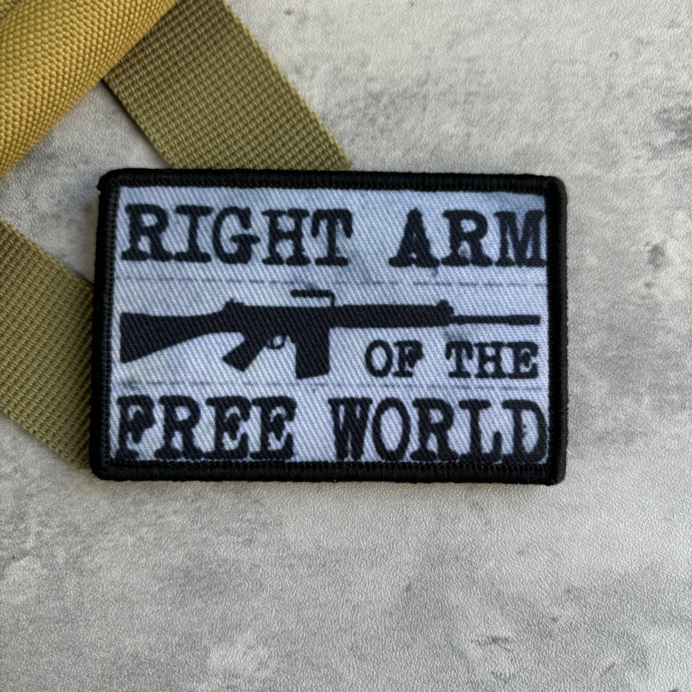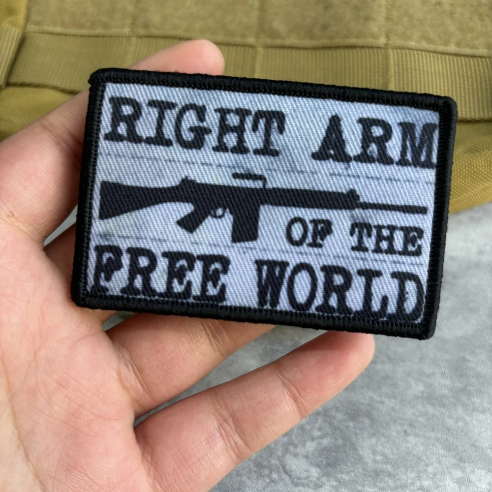 Parche táctico impreso FAL del brazo derecho del mundo libre, emblema de gancho y bucle, insignia de moral militar, brazalete, pegatinas para mochila Chevron
