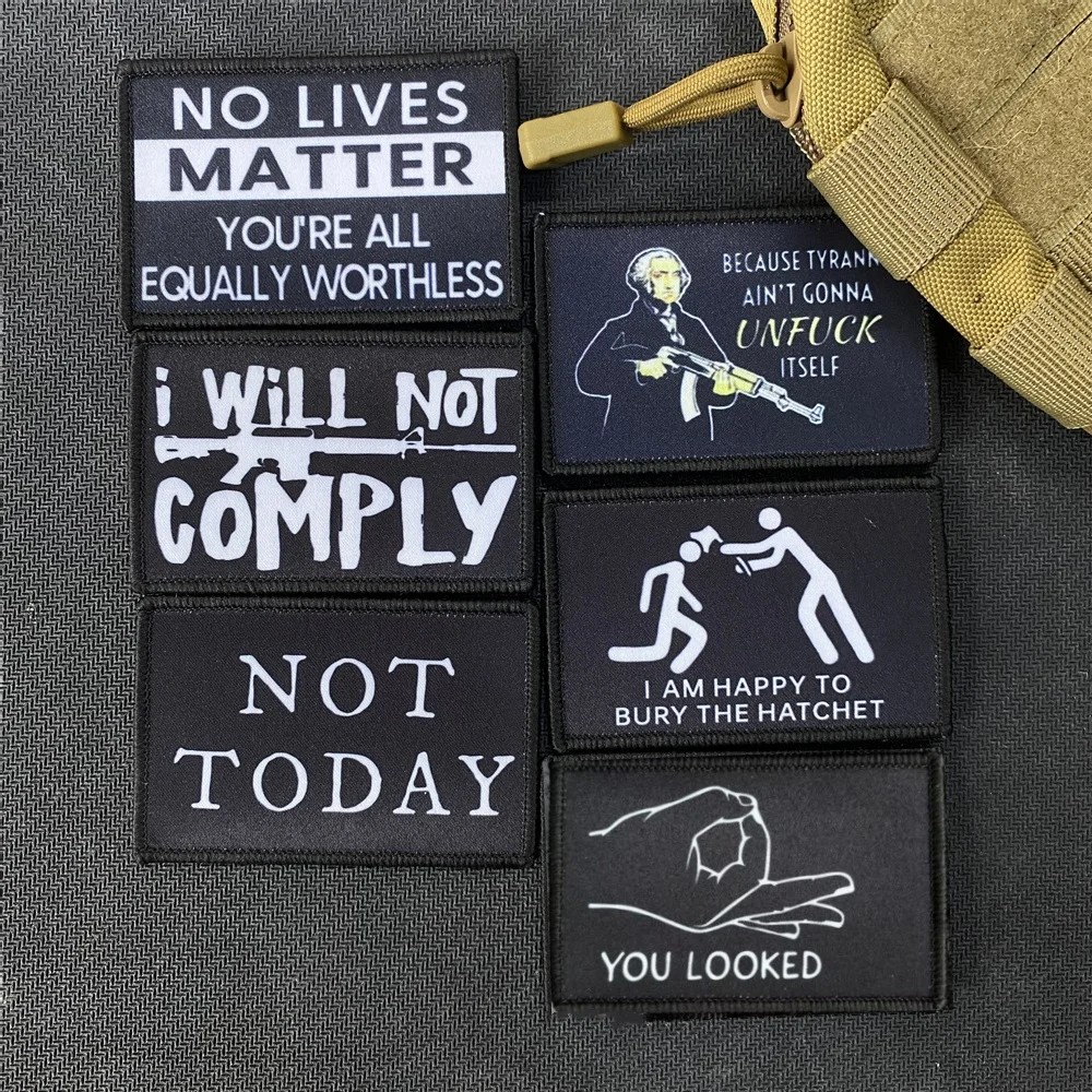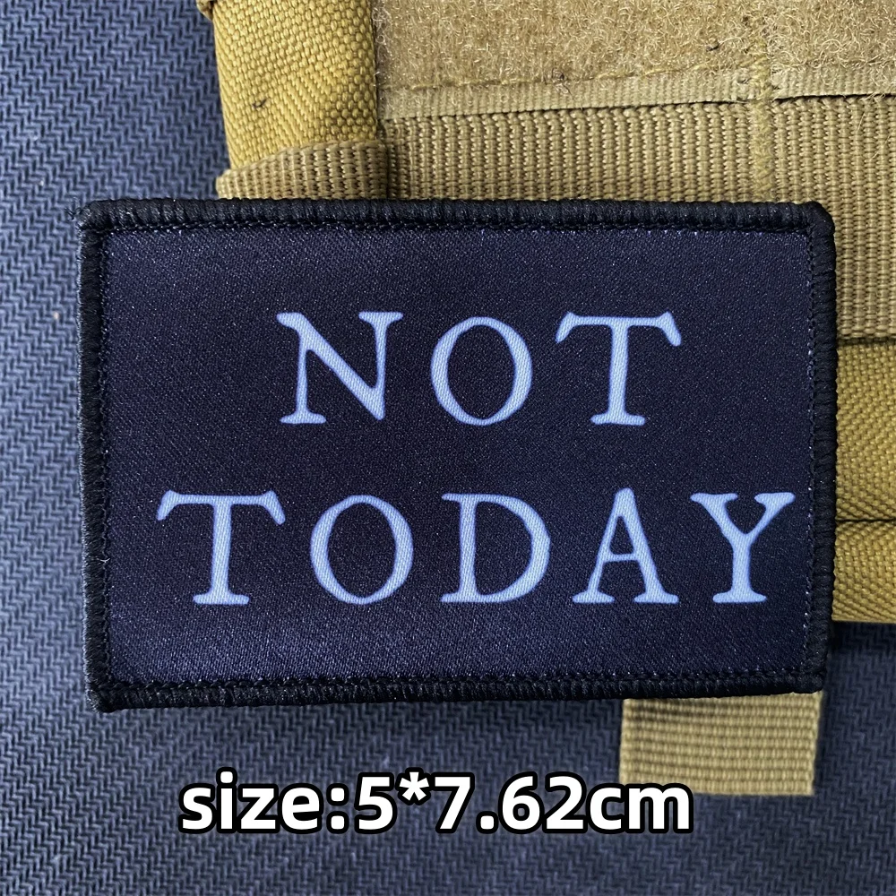 Parche táctico impreso con letras blancas y negras, mochila de hacha, insignia de moral divertida, pegatinas de gancho y bucle, no hoy