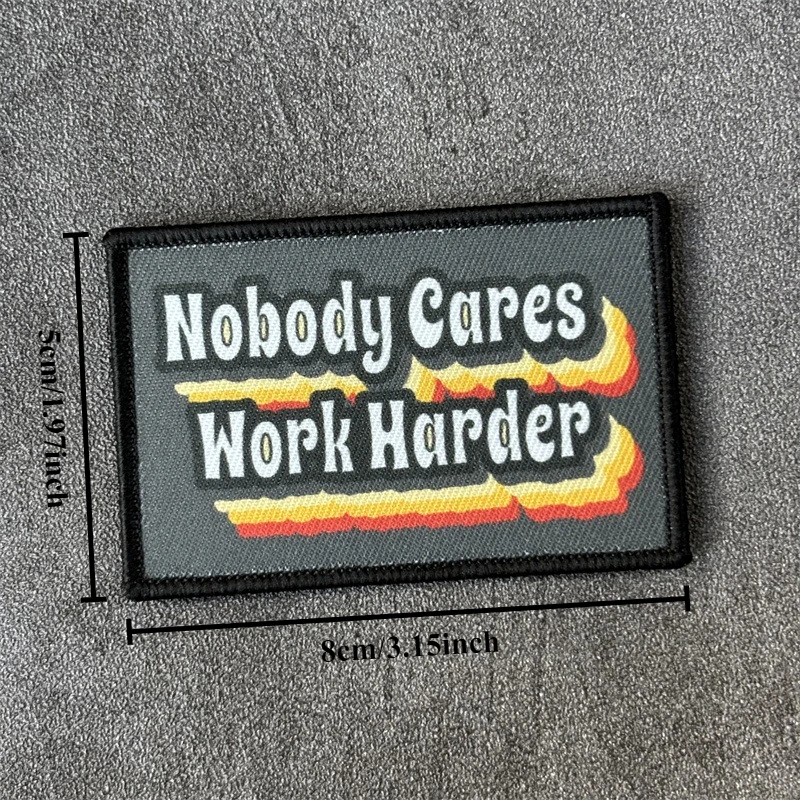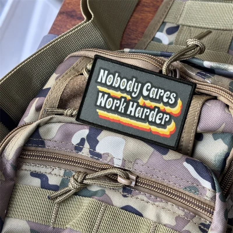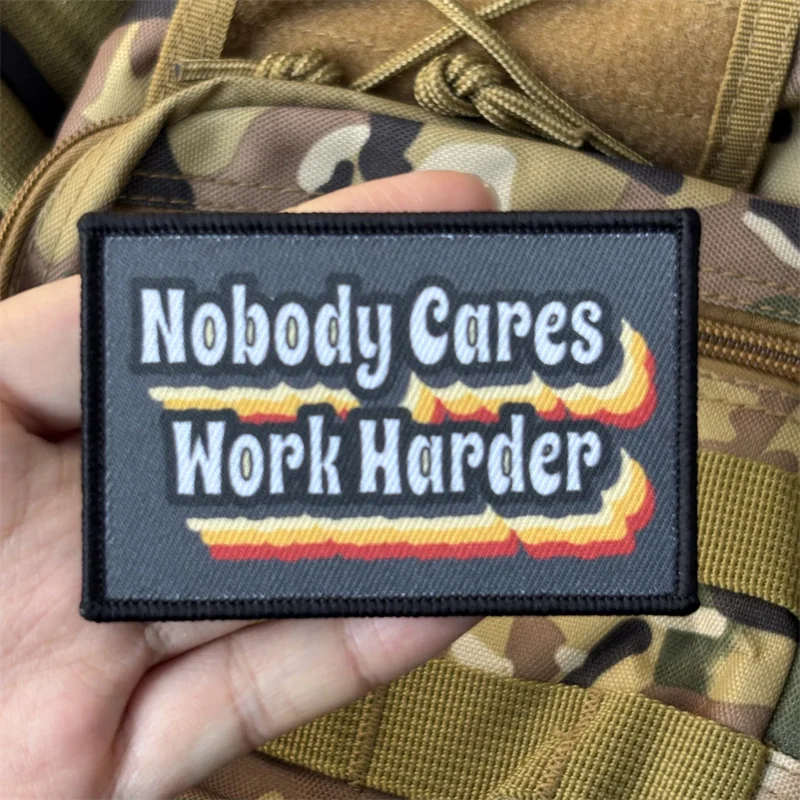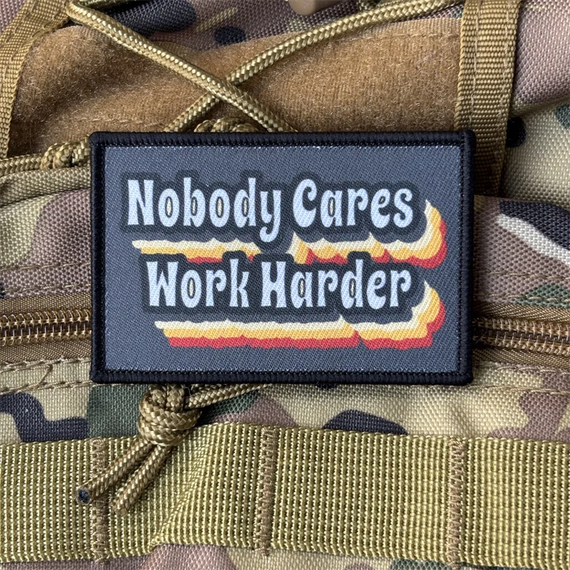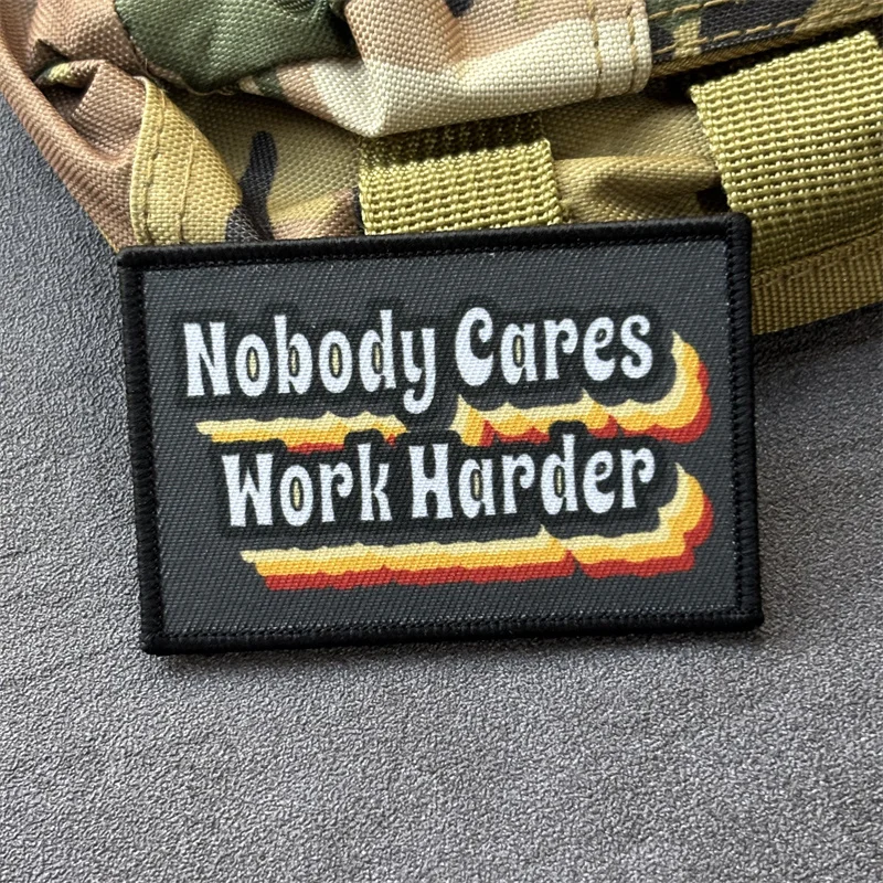Parche táctico "Nobody se preocupa trabajar más duro", insignia militar de moral, parches de bucle de gancho, pegatinas para mochila de ropa, brazalete