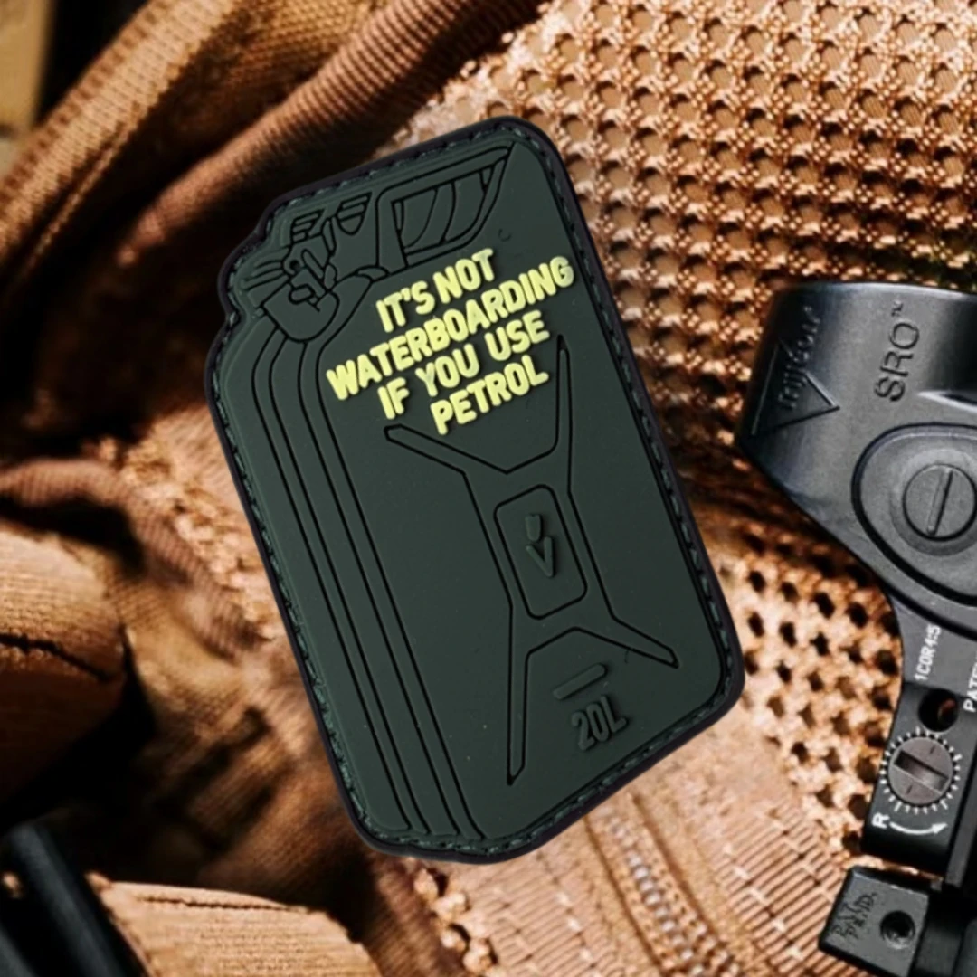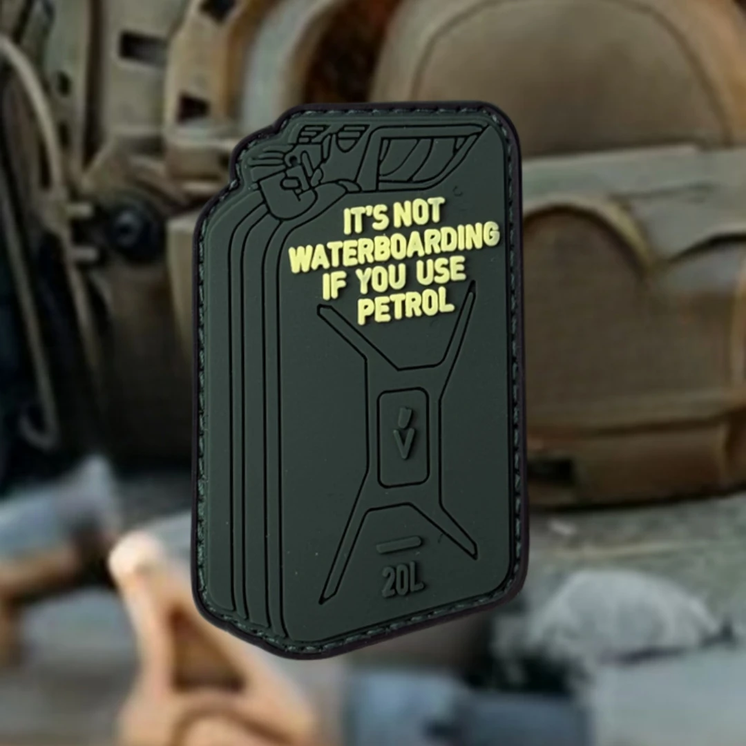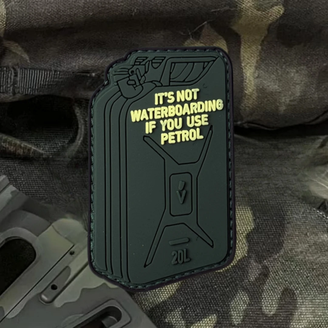 Parche táctico JERRYCAN, insignia de moral de PVC, parches de gancho y bucle, pegatina militar, "SIS NO WATERBOARD IF YOU USE PETROL"