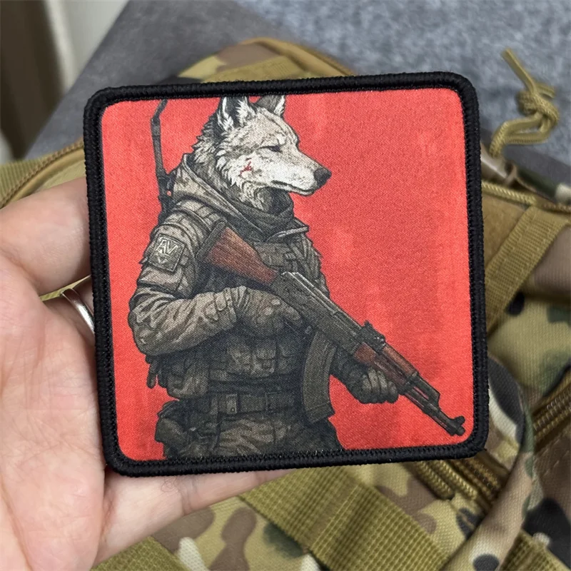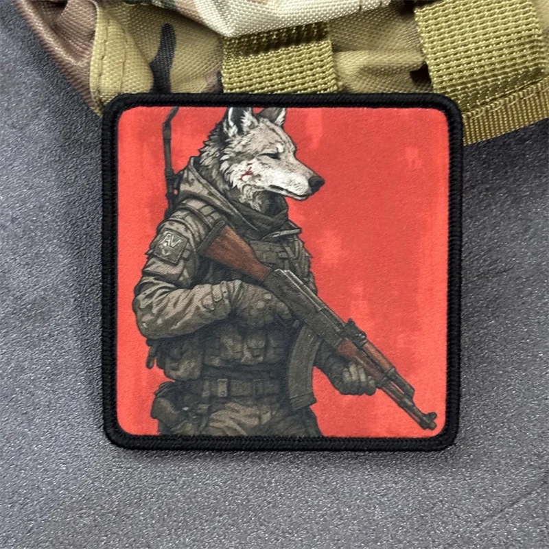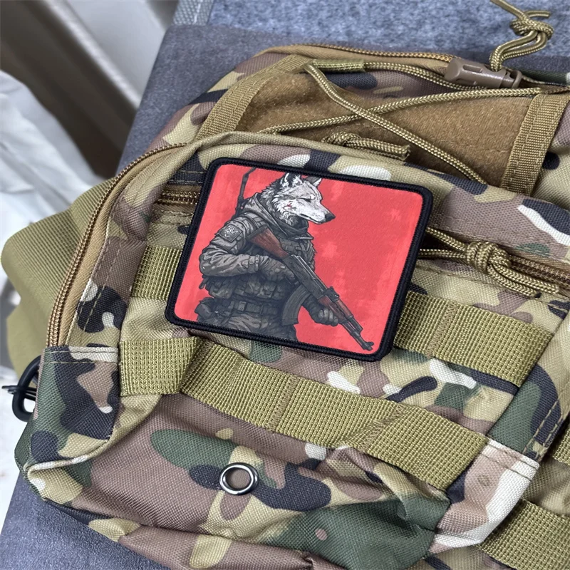 Parche táctico "lobo con pistola" para ropa, insignia de moral militar, brazalete con estampado, parche con gancho, mochila