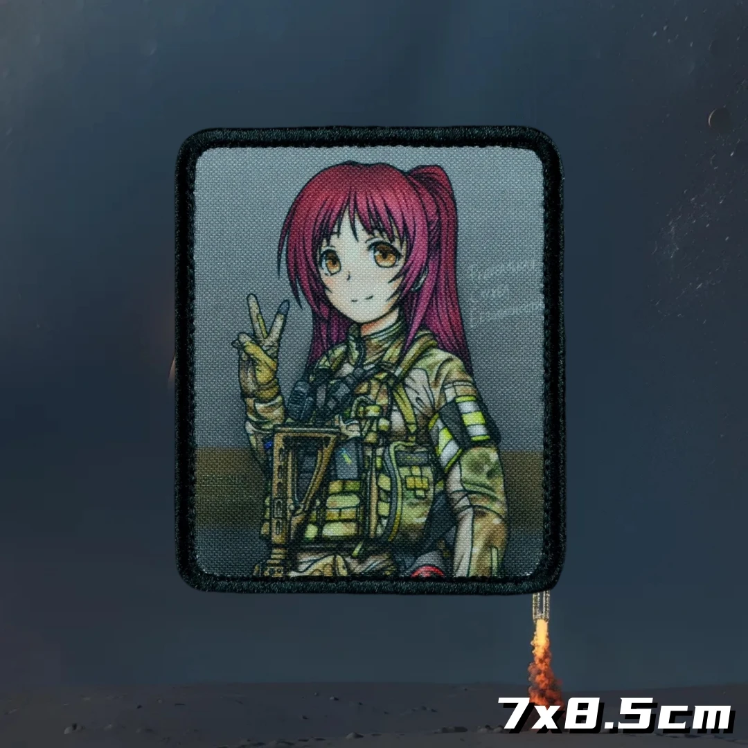 Parche táctico "Manga FSB" dibujos animados chica moral insignia militar brazalete impreso gancho y bucle parches ropa mochila pegatina