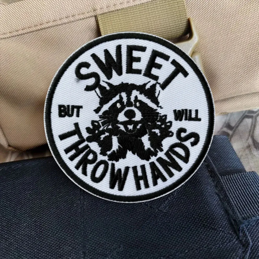 Parche táctico de mapache dulce, bonitos parches bordados con gancho y bucle, insignia de moral, brazalete del ejército militar, pegatinas para mochila