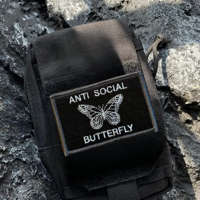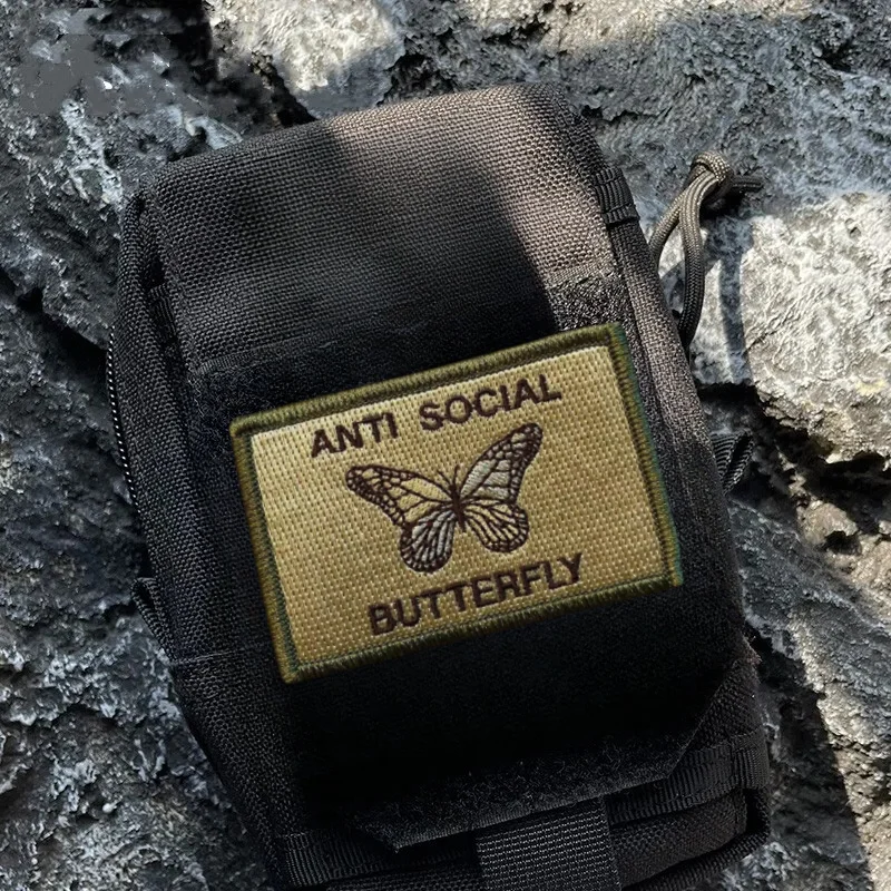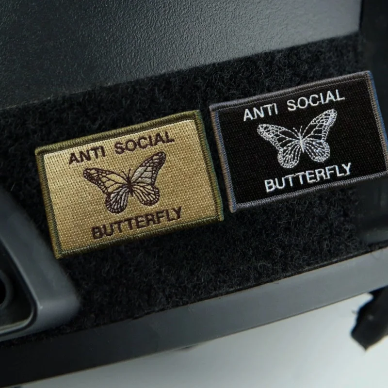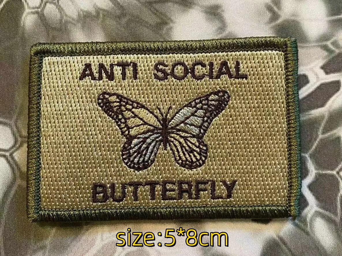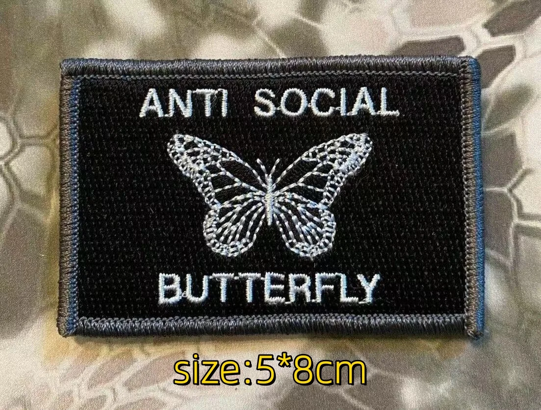 Parche táctico de mariposa antisocial, Bandera de mariposa militar, insignia de moral Multitan, bordado, Parche de gancho y bucle, pegatinas de mochila