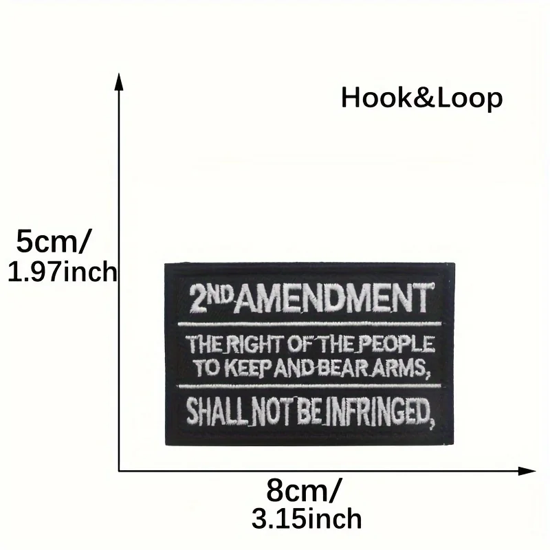 [Parche táctico masculino] Insignia adhesiva de Velcros con parche bordado de segunda enmienda | Cierre de gancho y bucle | para mochilas, ropa