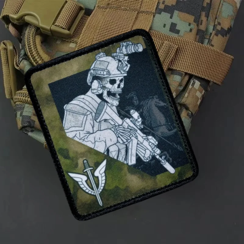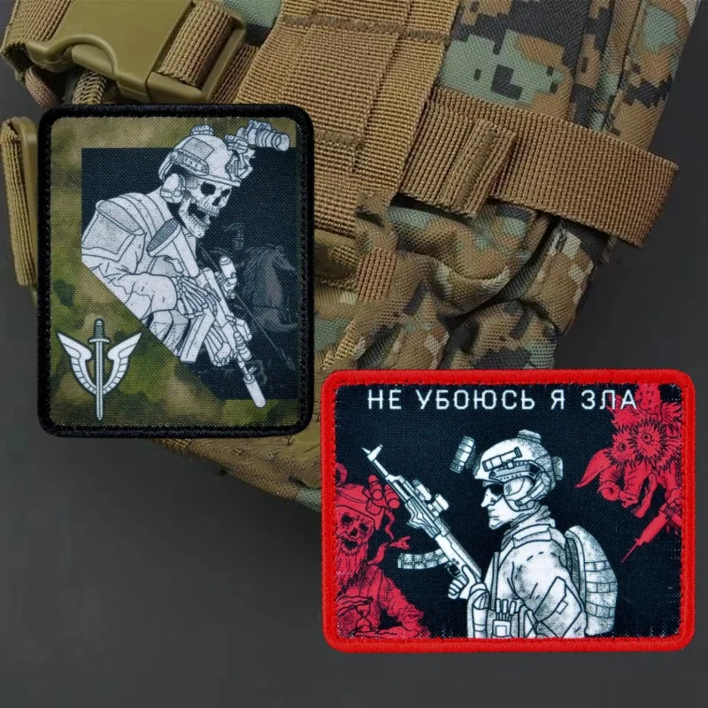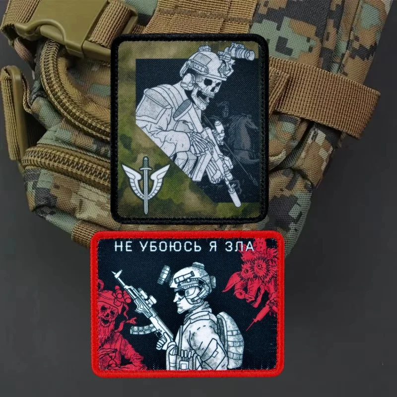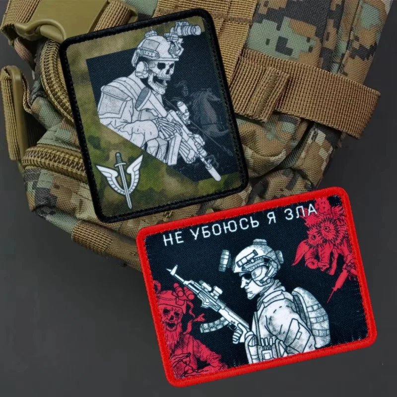 "OMON, Moscú, musgo" Parche táctico militar "mejaré no mal" Insignia de calavera morale Parches del ejército Etiqueta de mochila de combate Klett