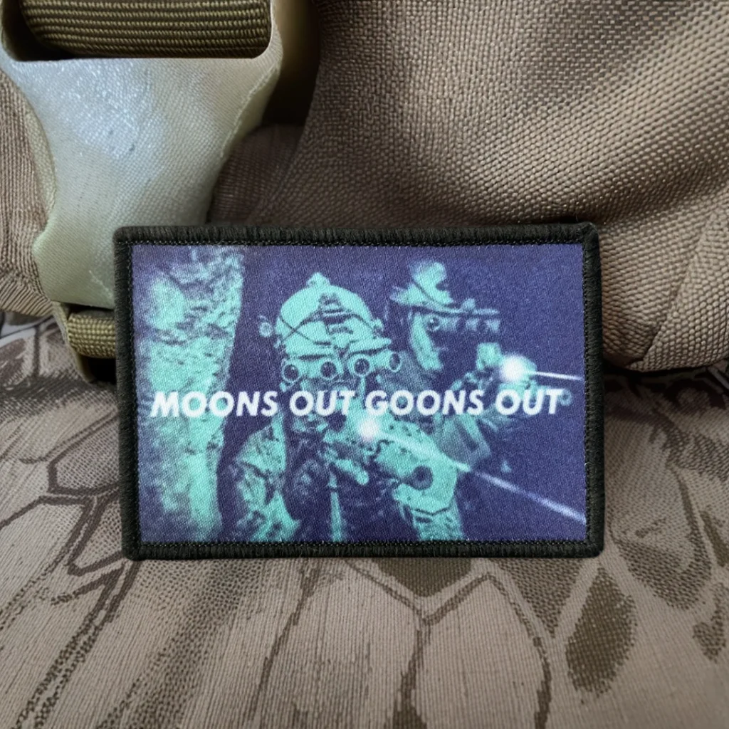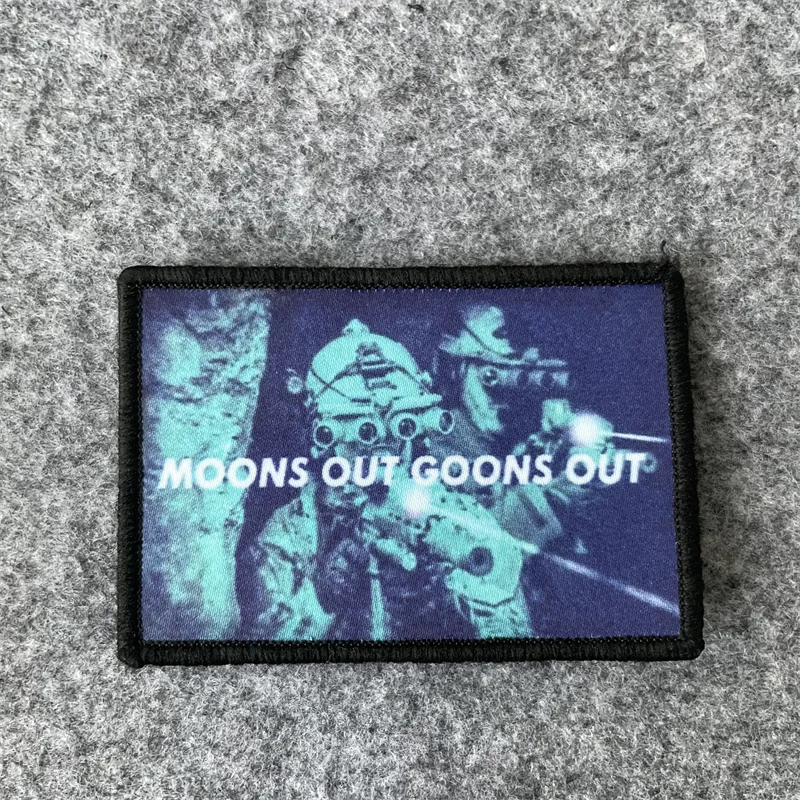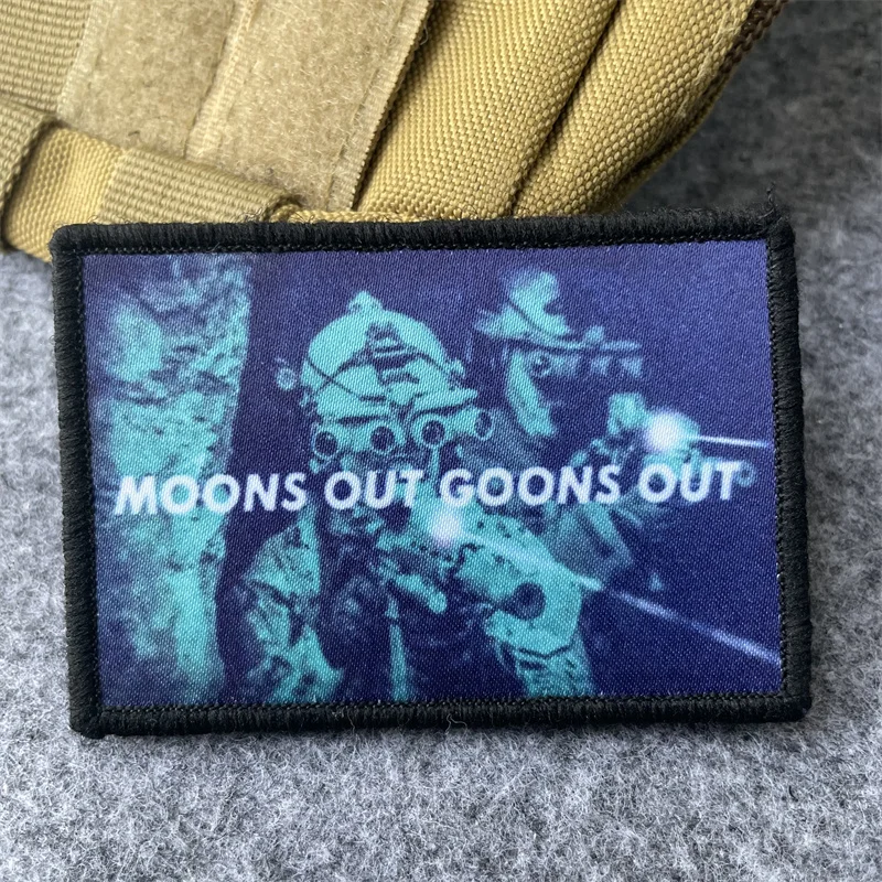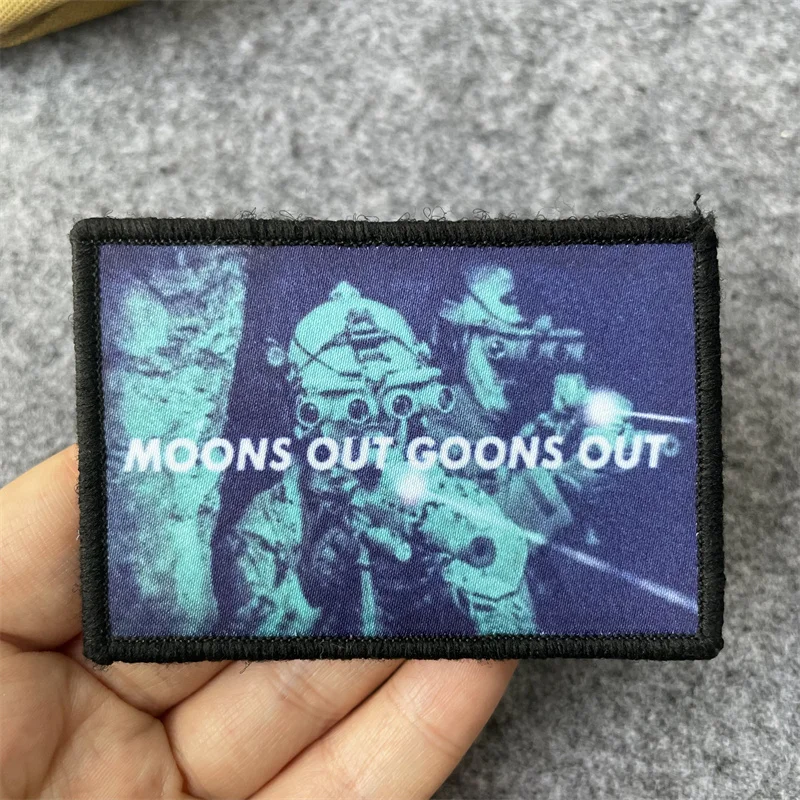 Parche táctico Moons Out Goons Out, insignia de moral militar, brazalete, parches de gancho y bucle impresos, pegatinas para ropa y mochila
