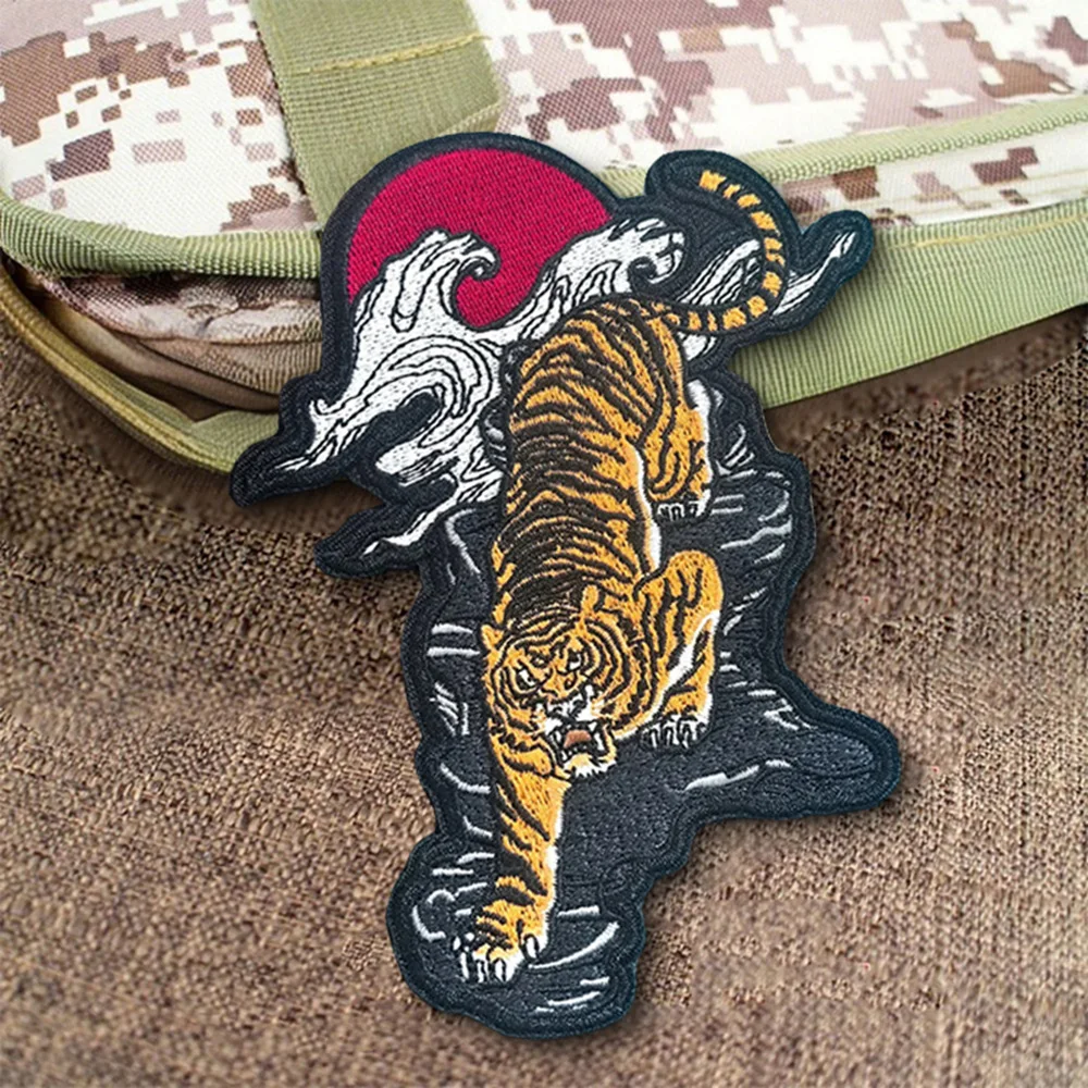 Parche táctico de moral bordado con forma de luna y sangre de tigre agachado, parche divertido con gancho y bucle, insignia militar, brazalete, pegatinas para mochila