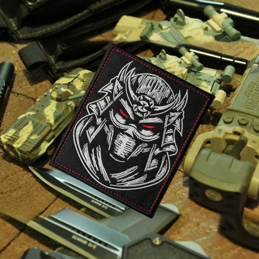 Parche táctico moral, brazalete militar del ejército, "máscara, calavera de guerrero", parches bordados de gancho y bucle para ropa, pegatina para mochila