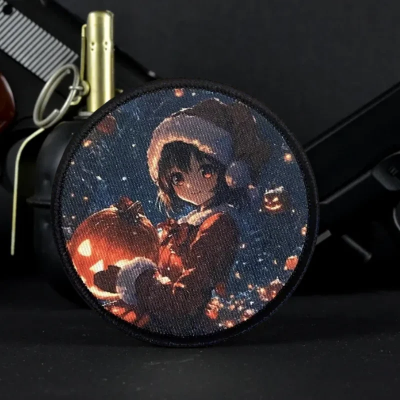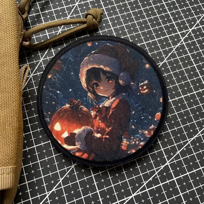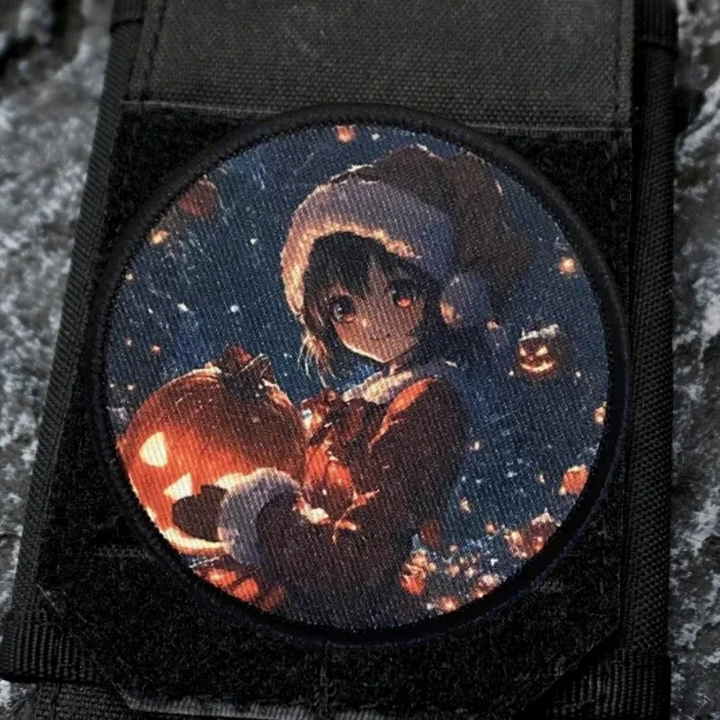 Parche táctico de moral de calabaza de Anime para niñas, emblema de gancho y bucle impreso, insignia militar, brazalete de combate, pegatinas para mochila