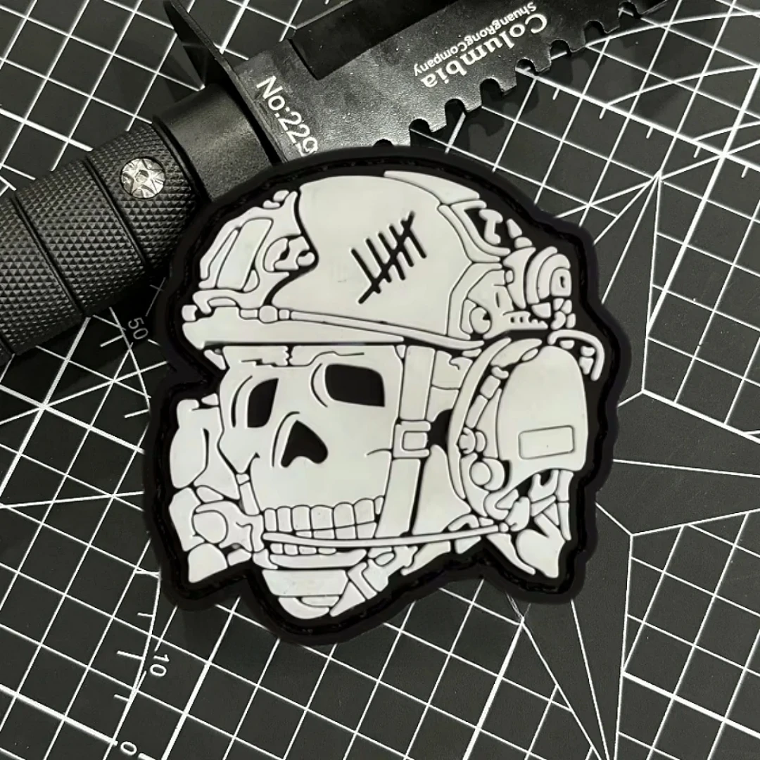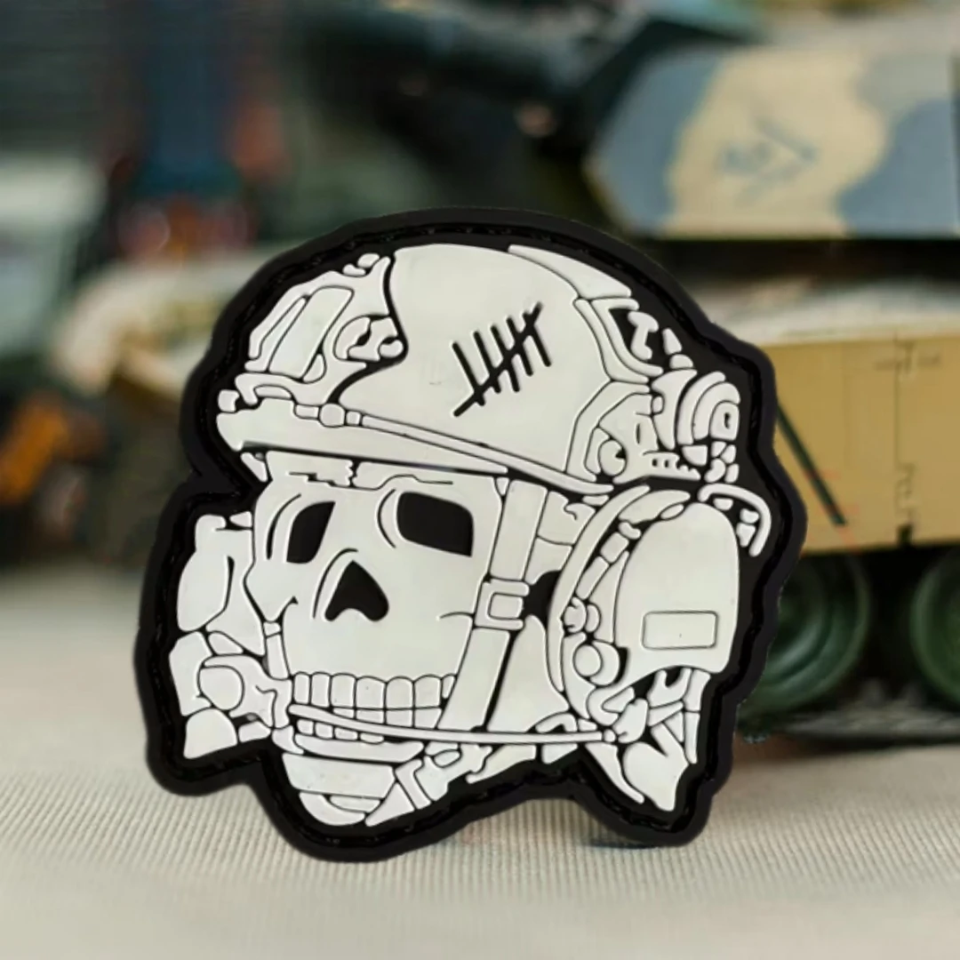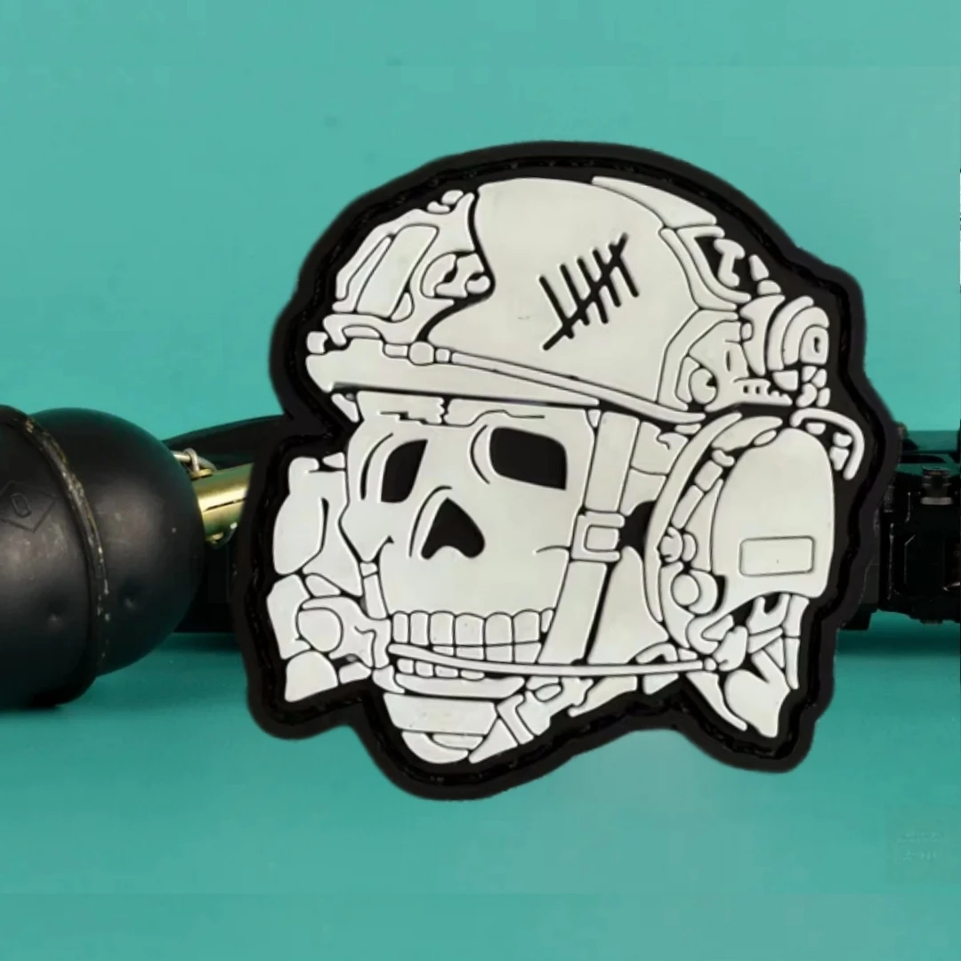 Parche táctico de moral de calavera, parches de gancho y bucle de PVC, brazalete del ejército militar, pegatinas para mochila Chevron