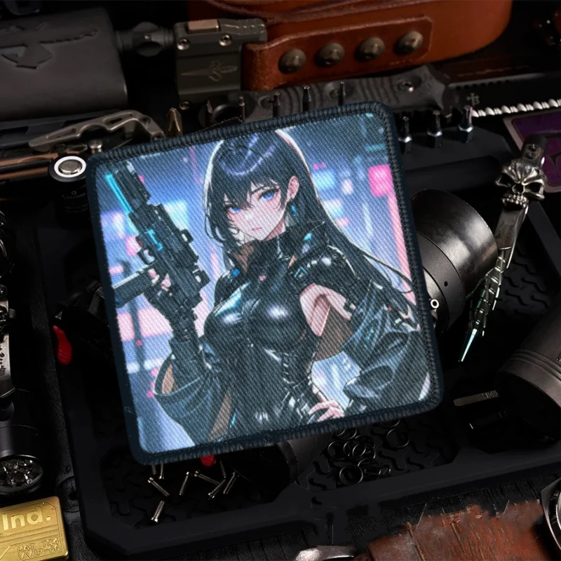 Parche táctico de moral de chica de Anime interestelar, emblema de gancho y bucle impreso, insignia militar, brazalete de combate, pegatinas para mochila