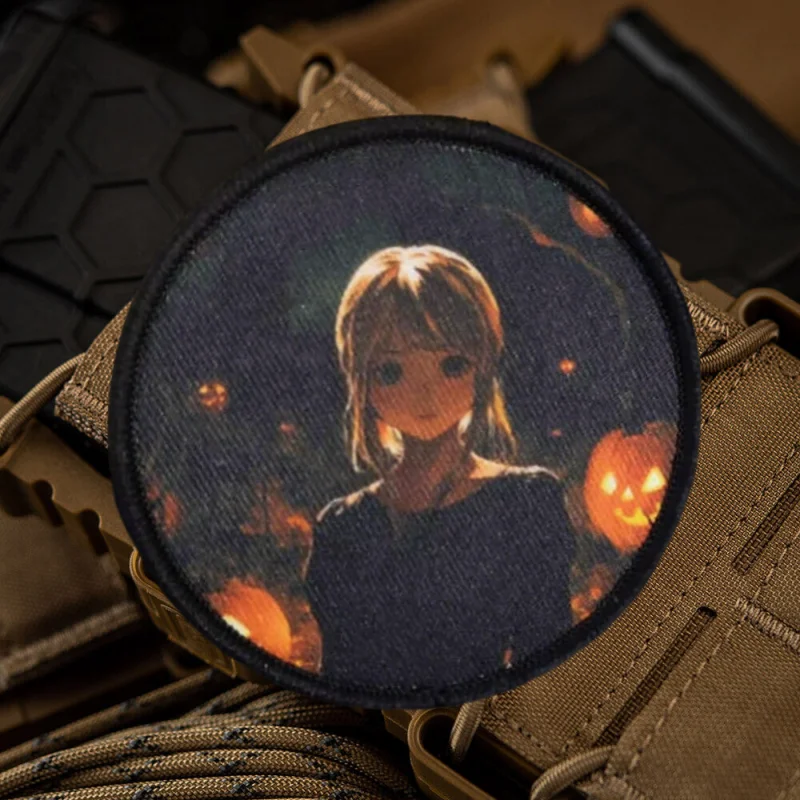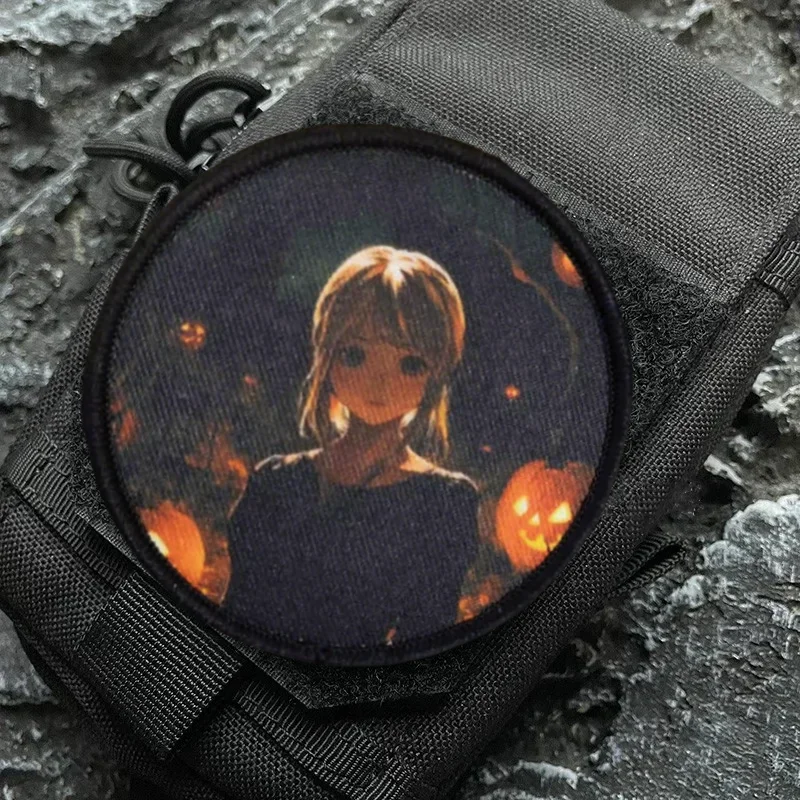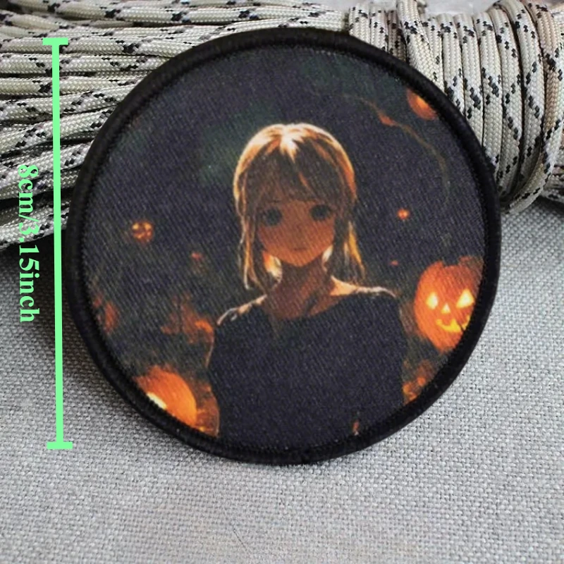 Parche táctico de moral de chica calabaza de Anime, emblema de gancho y bucle impreso, insignia militar, brazalete de combate, pegatinas para mochila