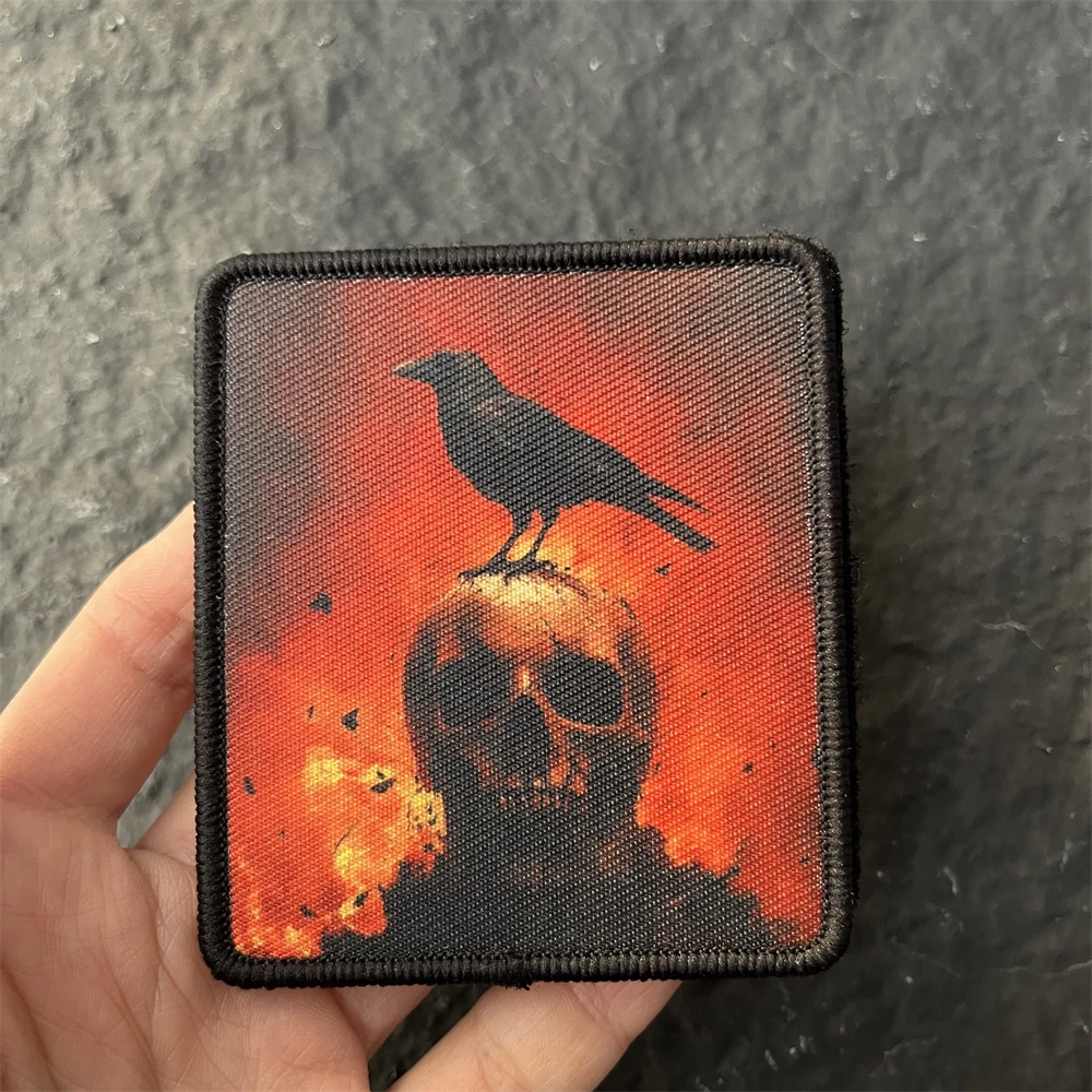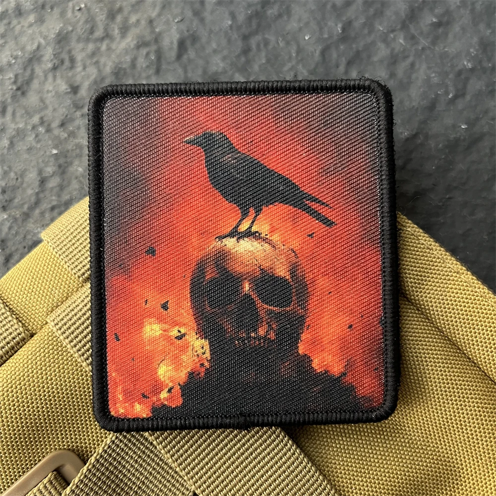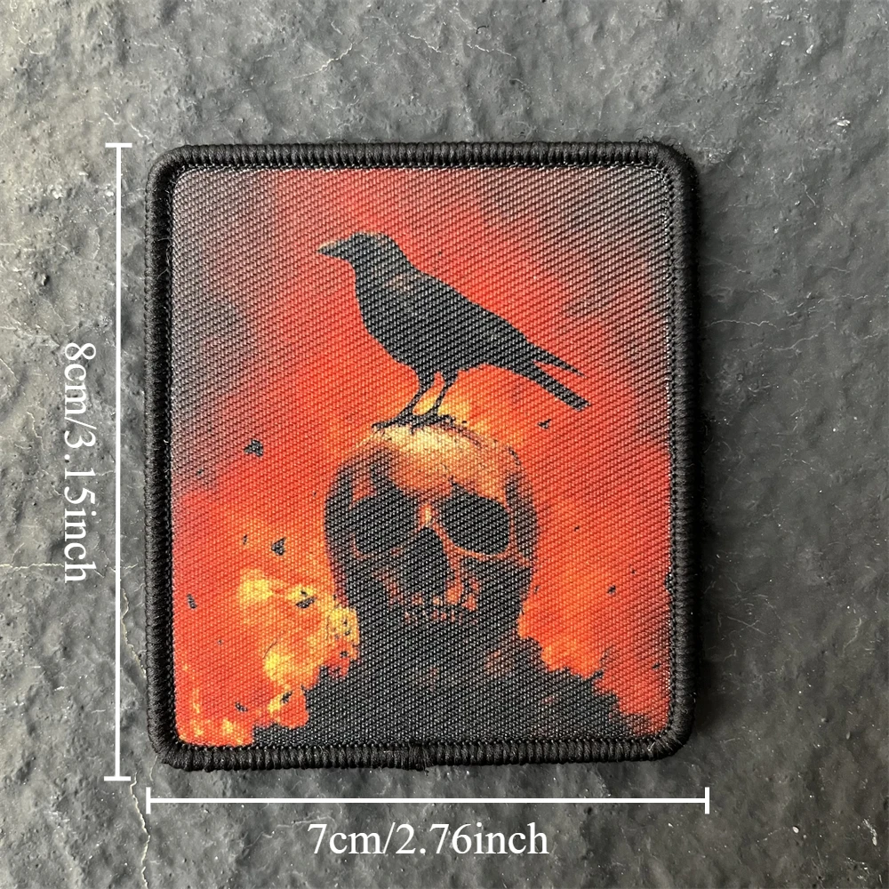 Parche táctico de moral de cuervo de la muerte y esqueleto, insignia con gancho impreso, brazalete militar, pegatina decorativa para mochila para ropa