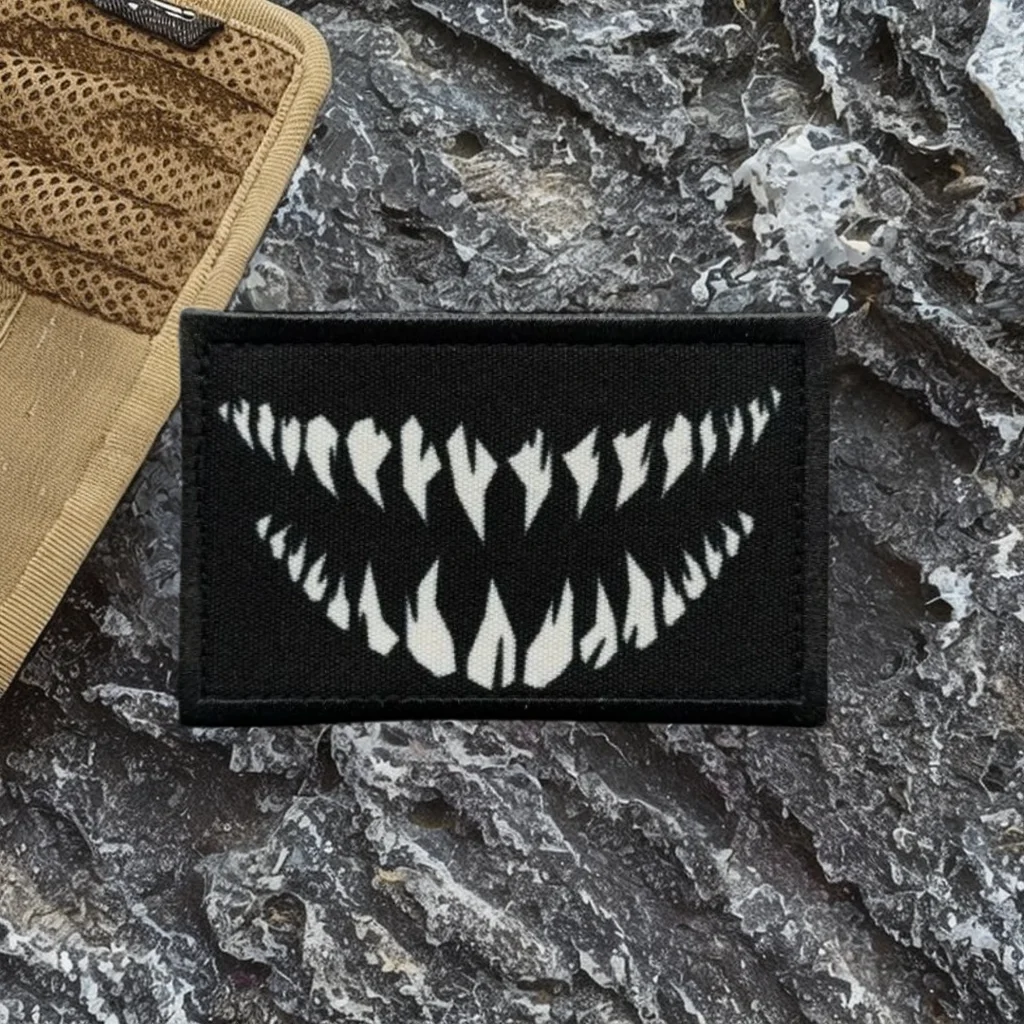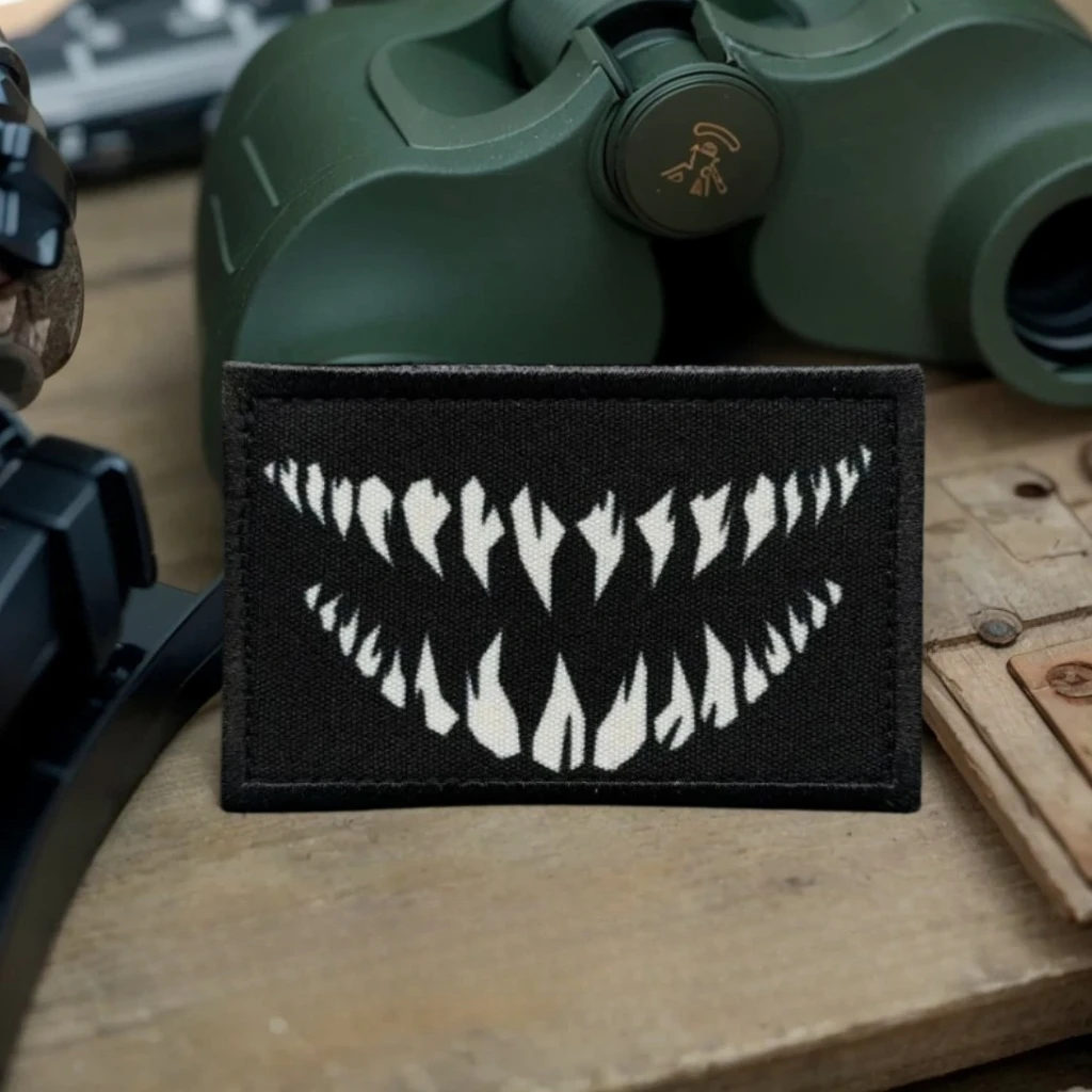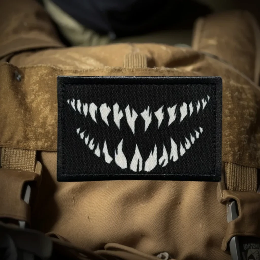 Parche táctico de moral de dientes de diablo, emblema divertido de gancho y bucle, brazalete militar, pegatinas para mochila