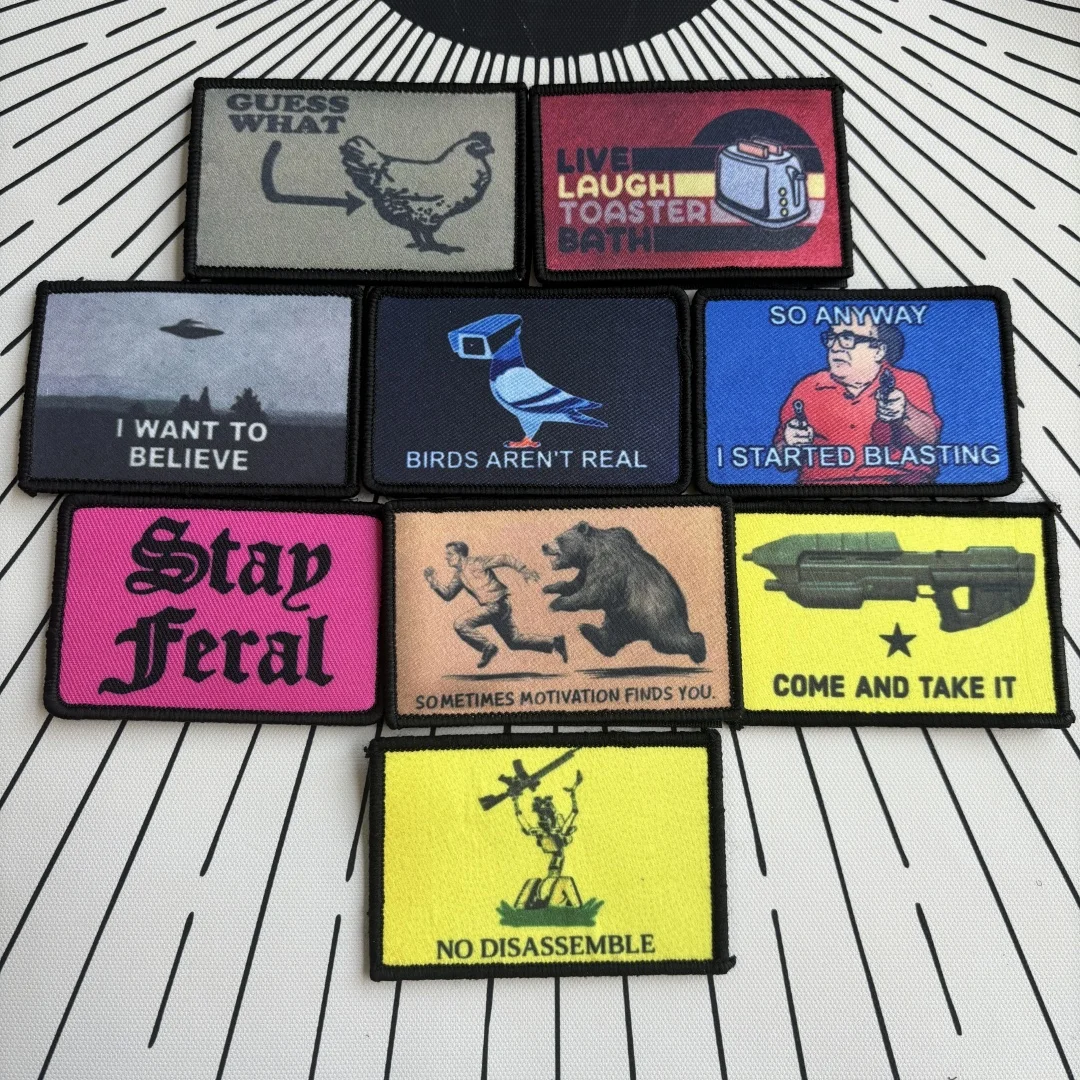 Parche táctico de moral divertida, pegatinas de mochila con estampado de pájaros, no son reales, insignia militar de gancho y bucle, ven y toma, brazalete