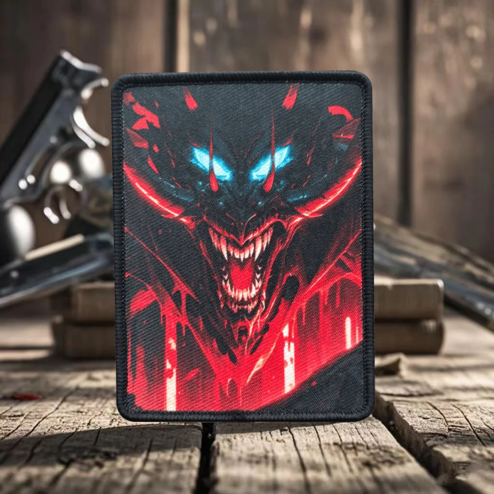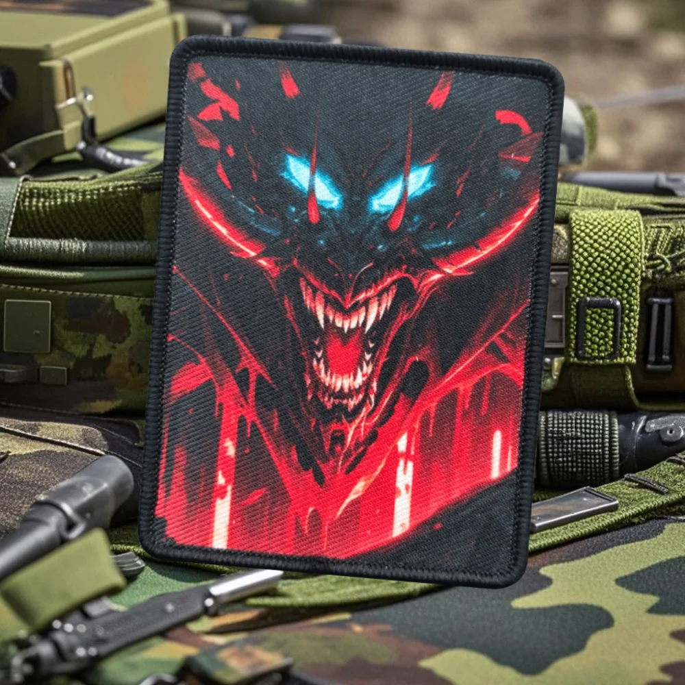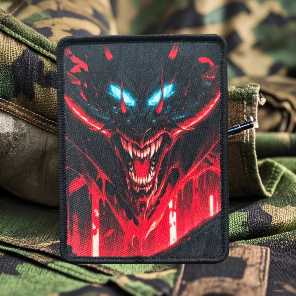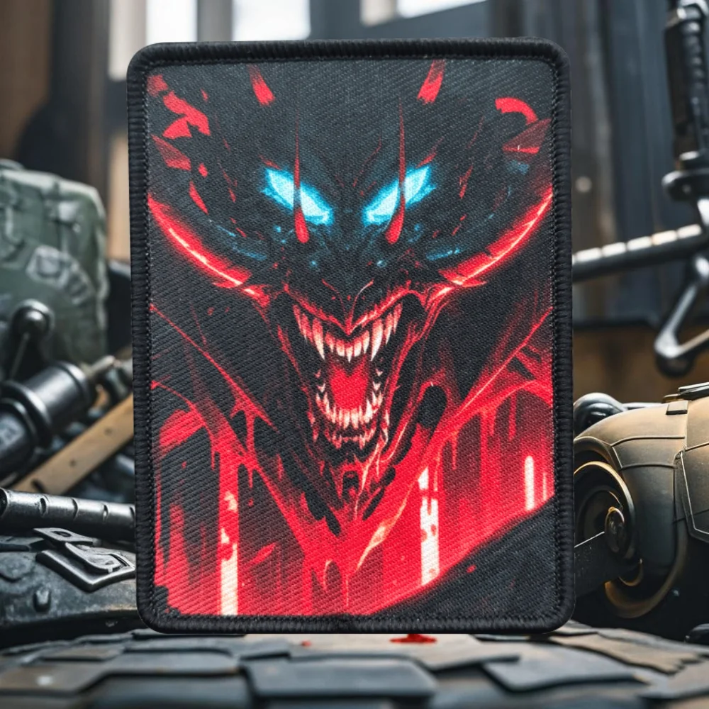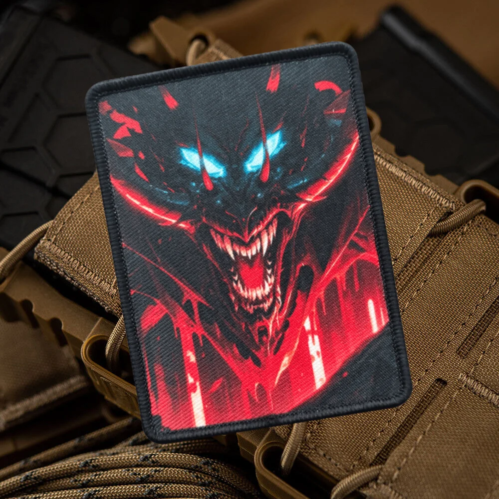 Parche táctico de moral de dragón escarlata, emblema de gancho y bucle impreso del diablo, insignia militar, brazalete de combate, pegatinas para mochila