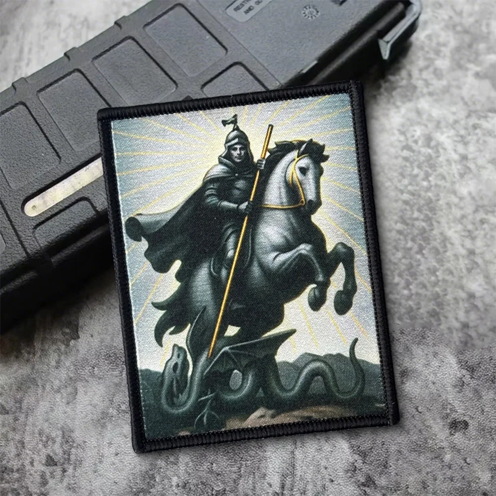 Parche táctico de moral de dragones, caballero de caballo blanco, parche de gancho y bucle, insignia militar de Chevron, brazalete, pegatinas para mochila