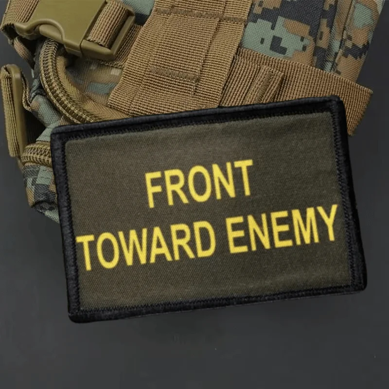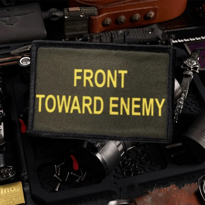 Parche táctico de moral con emblema de gancho y bucle impreso "Front TOWARD The ENEMY", insignia militar, brazalete de combate, pegatinas para mochila