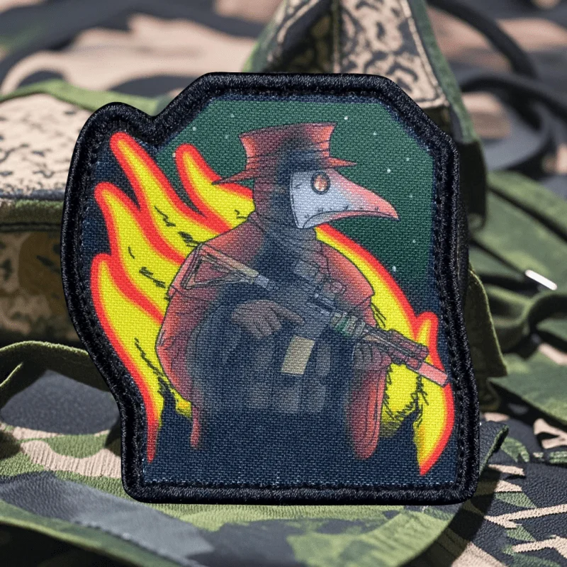 Parche táctico de moral con emblema de gancho y bucle impreso "The Plague Doctor", insignia militar, brazalete de combate, pegatinas para mochila