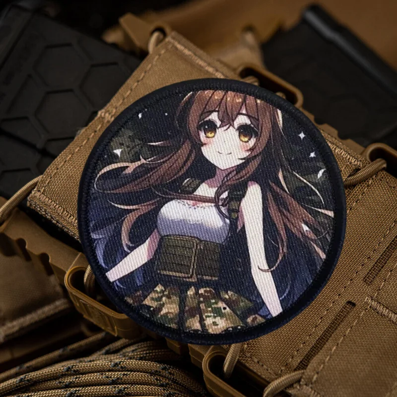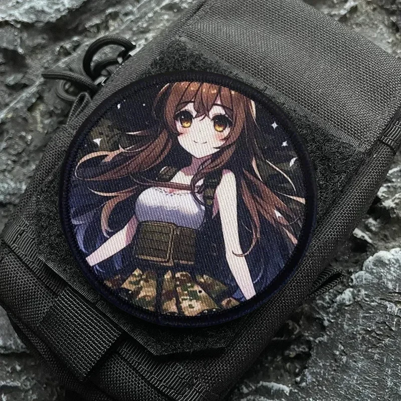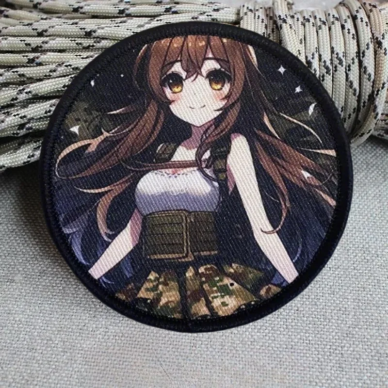 Parche táctico de moral con estampado de Chica de Anime, emblema de gancho y bucle impreso de guerrero femenino, insignia militar, brazalete de combate, pegatinas para mochila