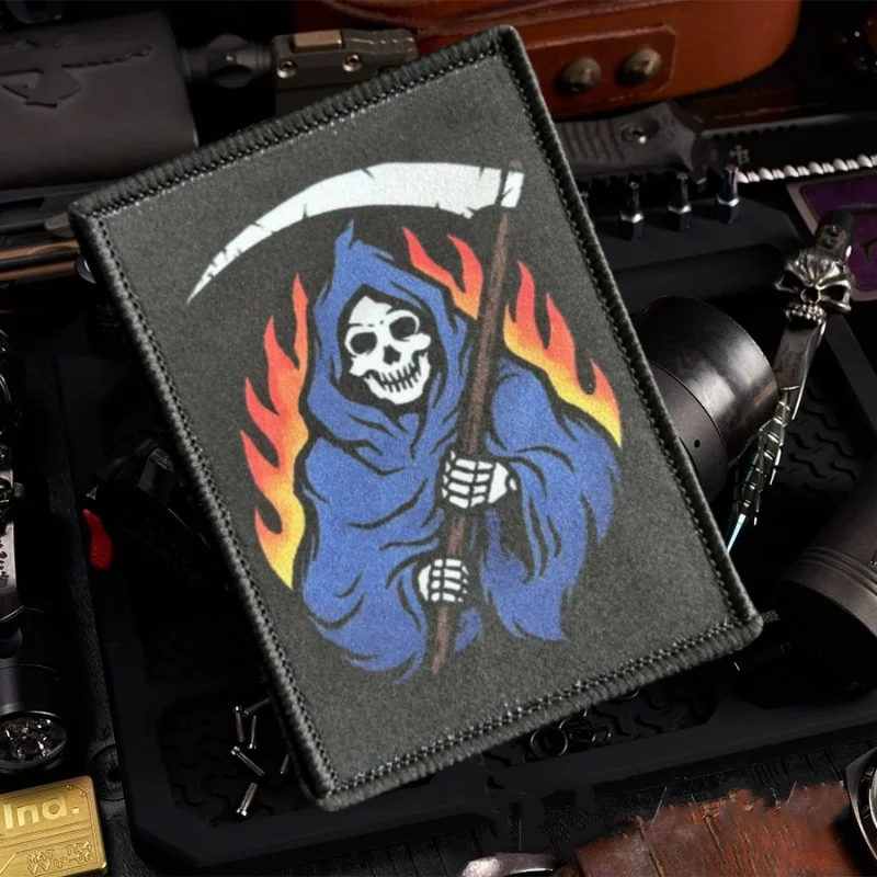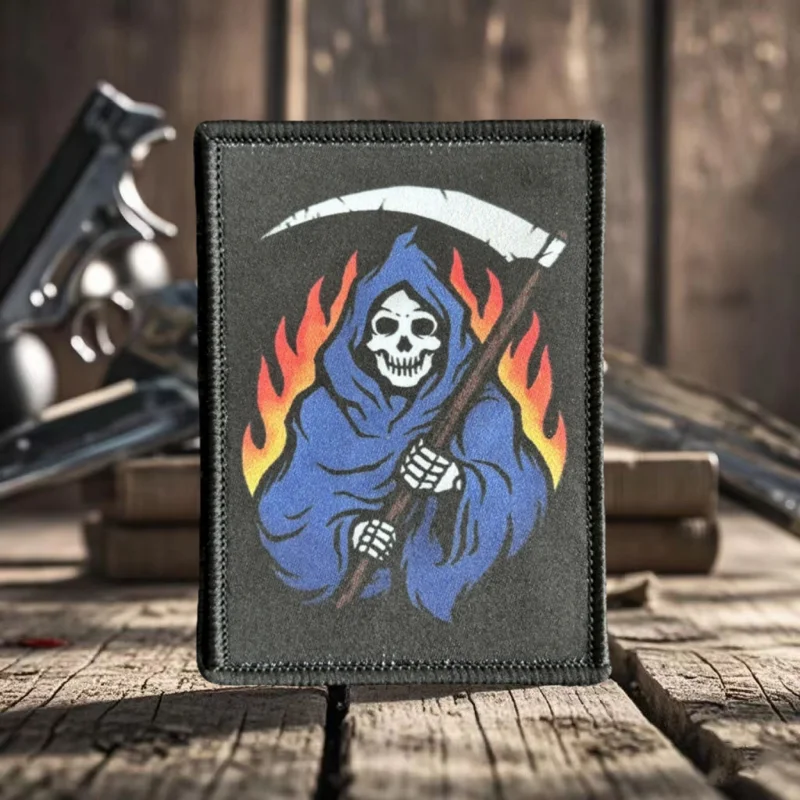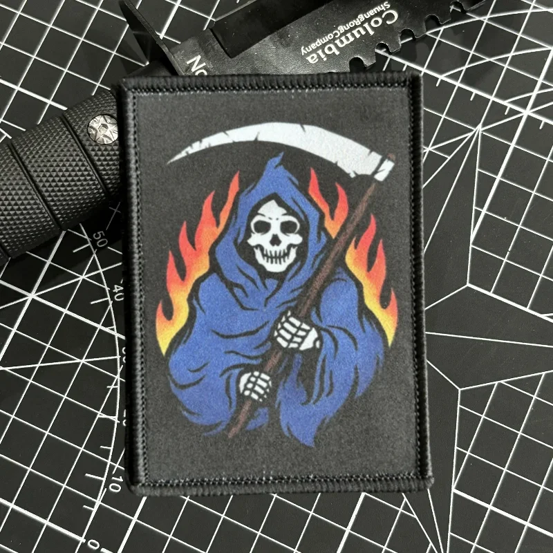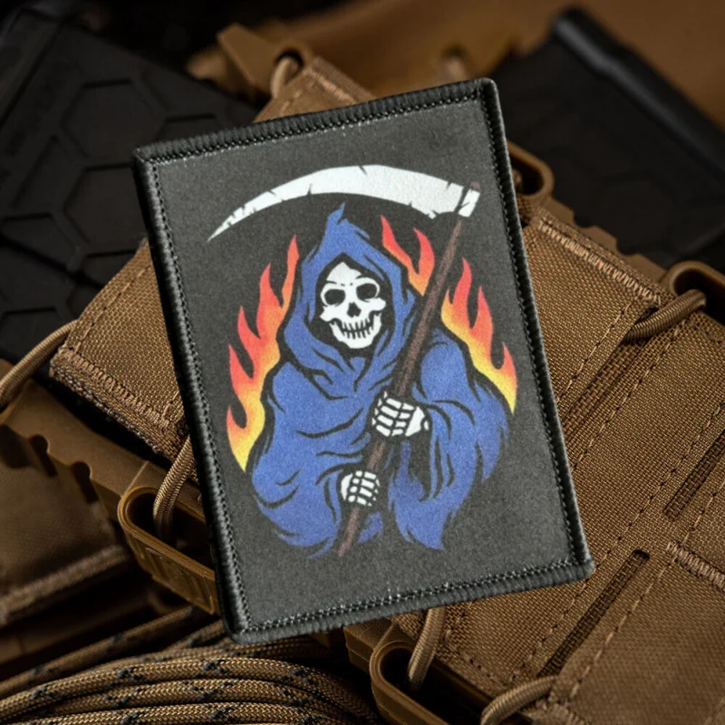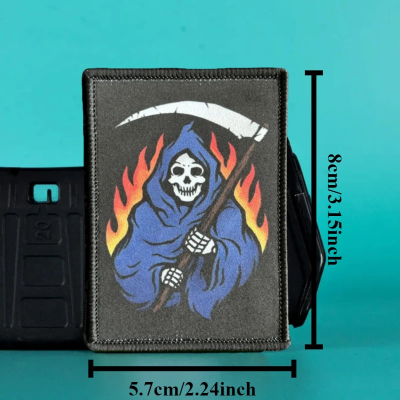 Parche táctico de moral Hellbringer Reaper, Punk, calavera de la muerte, soldado, emblema de gancho y bucle impreso, insignia militar, pegatinas para mochila