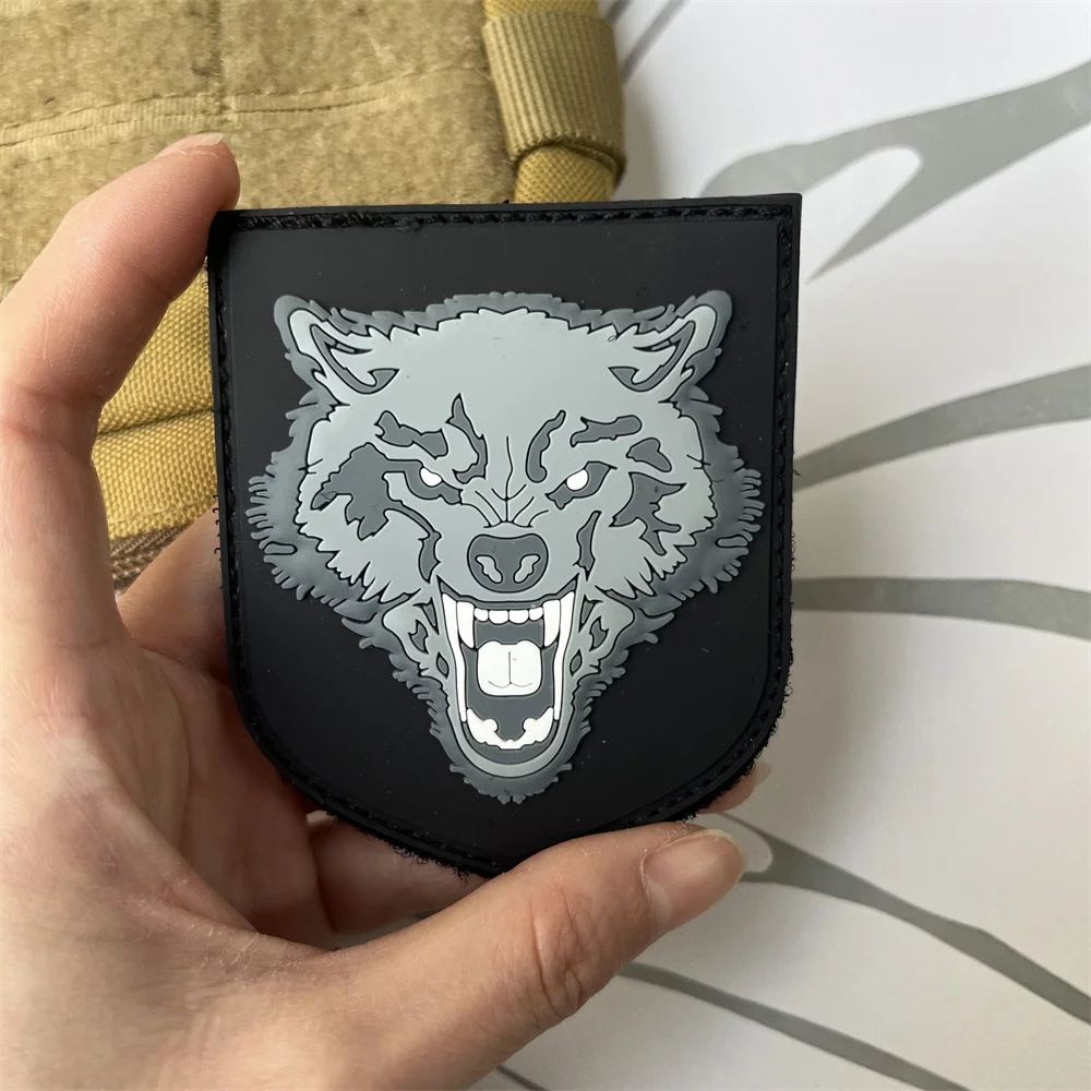 Parche táctico de moral de hombre lobo, pegatina decorativa para mochila al aire libre, parches de gancho y bucle de PVC de lobo para ropa