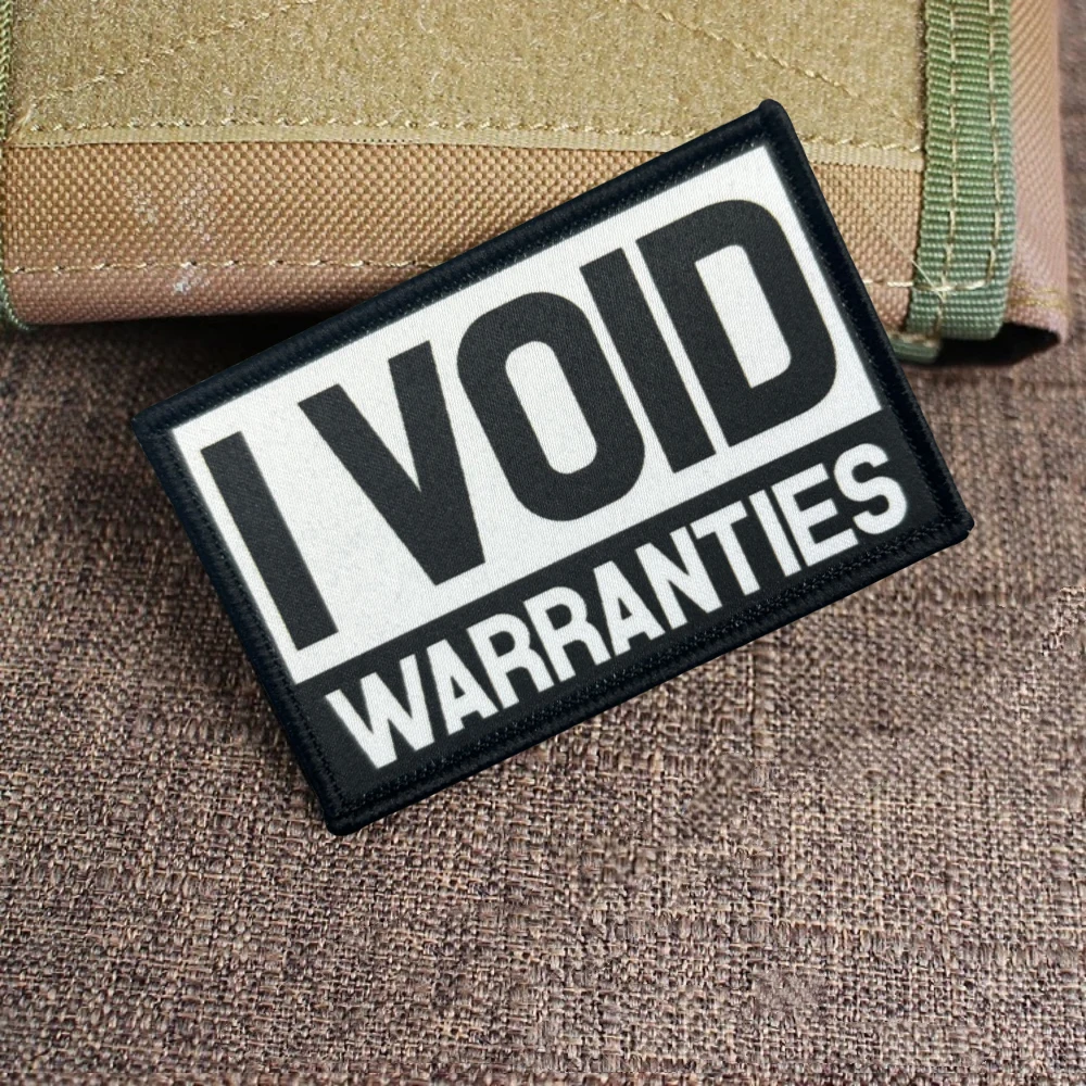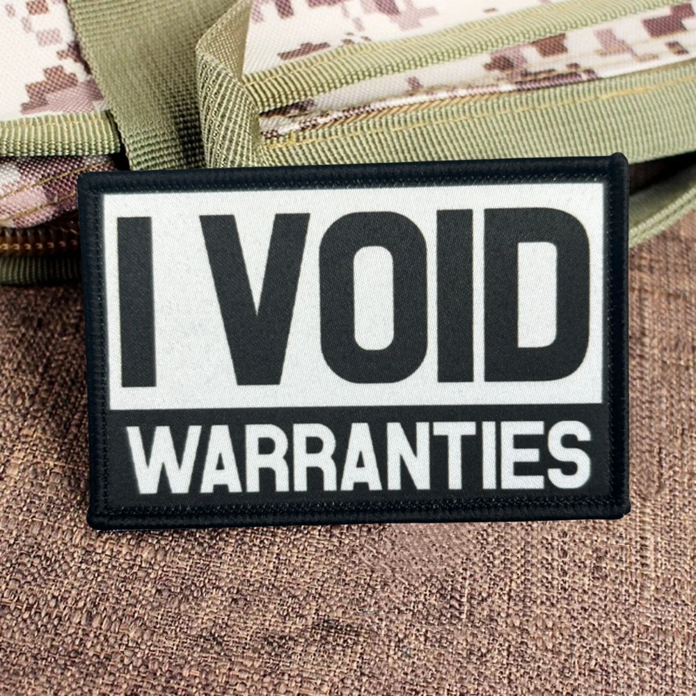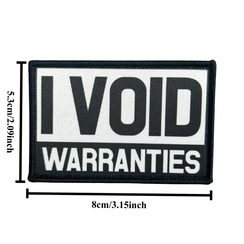 "I Void Garantías" Parche táctico moral Parches de bucle de gancho estampados del ejército militar para pegatinas de mochila de ropa1.Debido a las diferentes resoluciones de los dispositivos electrónicos, el color puede ser ligeramente diferente al color real.