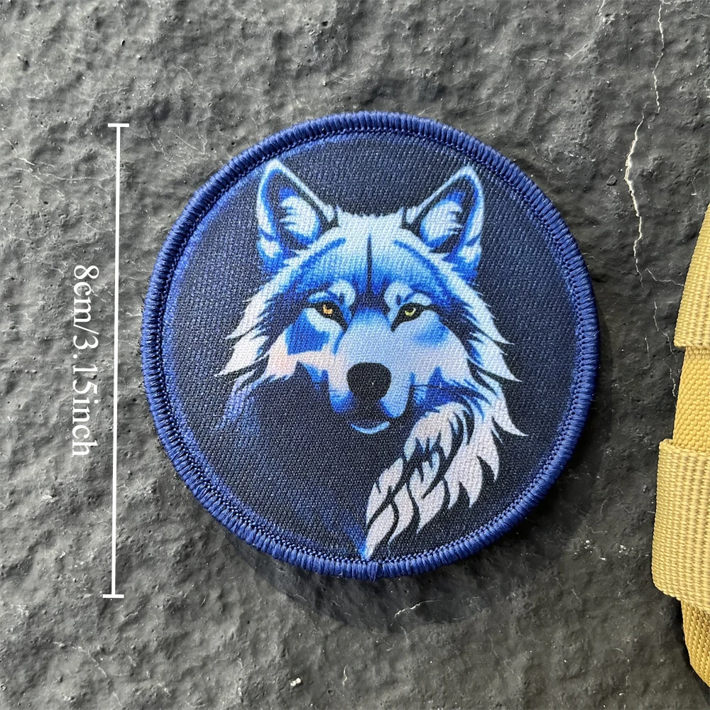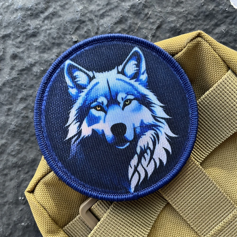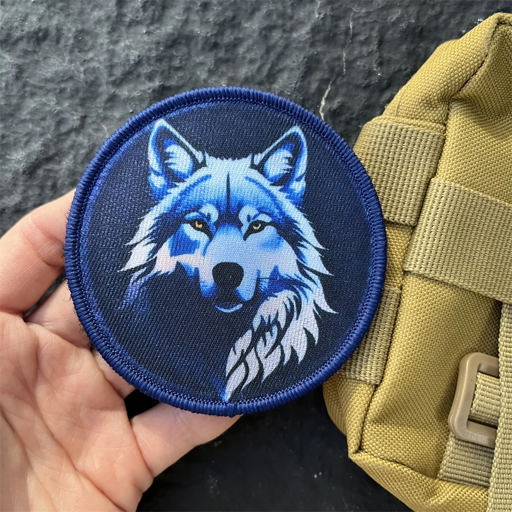 Parche táctico de moral de lobo azul, brazalete militar con gancho y bucle, pegatina decorativa impresa para ropa de mochila