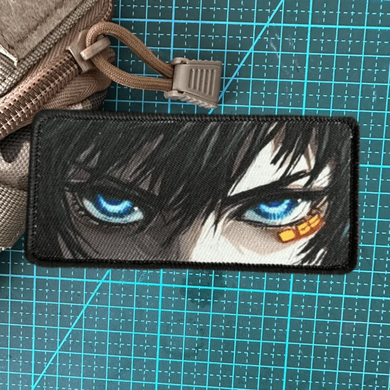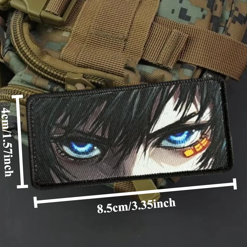 Parche táctico de moral con ojos de Anime, emblema de gancho y bucle impreso de fuerzas especiales, insignia del ejército militar, brazalete de combate, pegatinas para mochila
