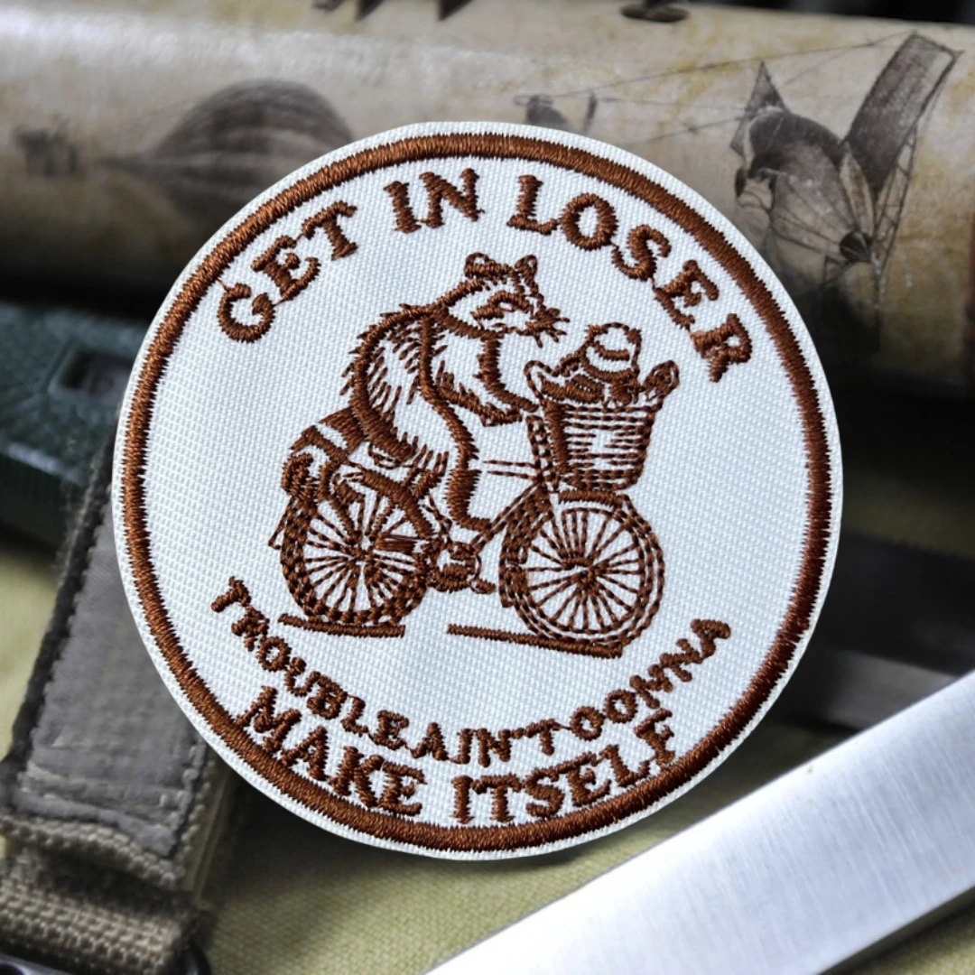 Parche táctico de moral, parches de gancho y bucle bordados de mapache para ropa, pegatina para mochila