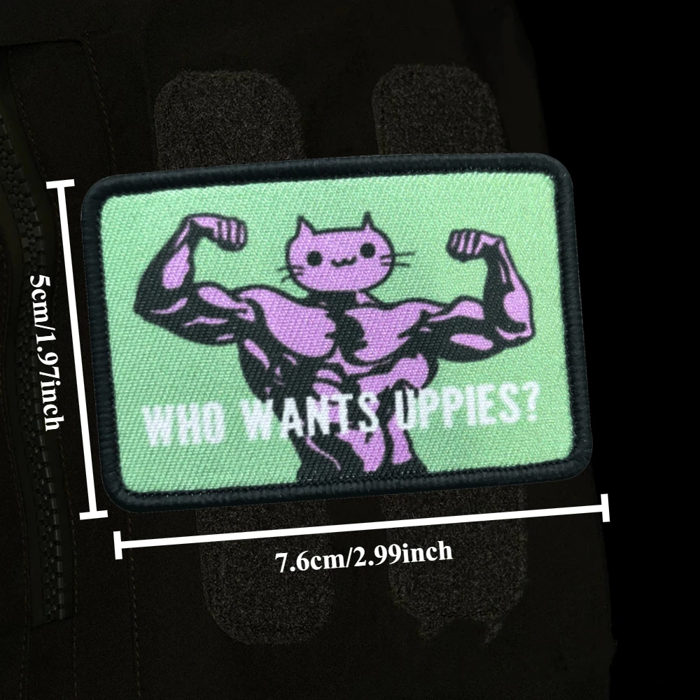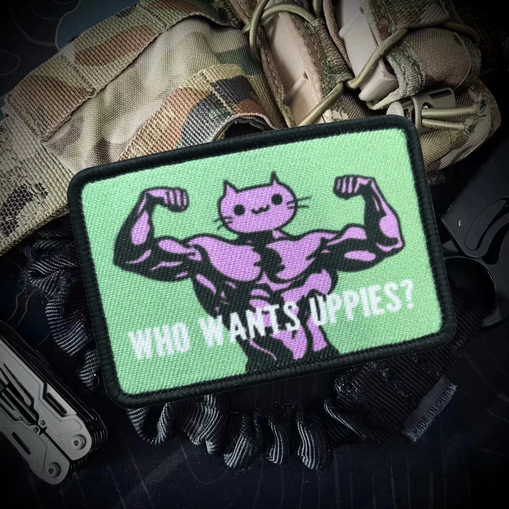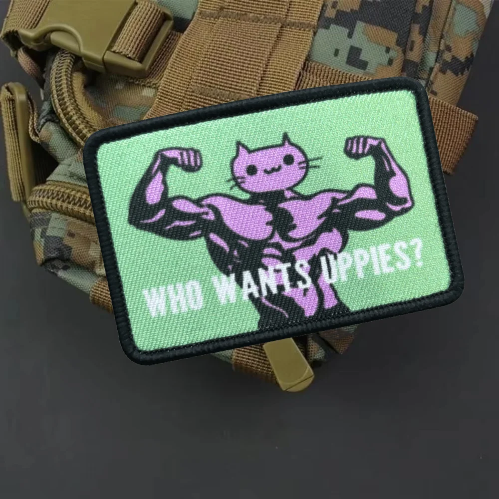 "Qui Wants Uppies" parche táctico moral impreso emblema de gancho y bucle insignia militar brazalete de combate pegatinas de mochila