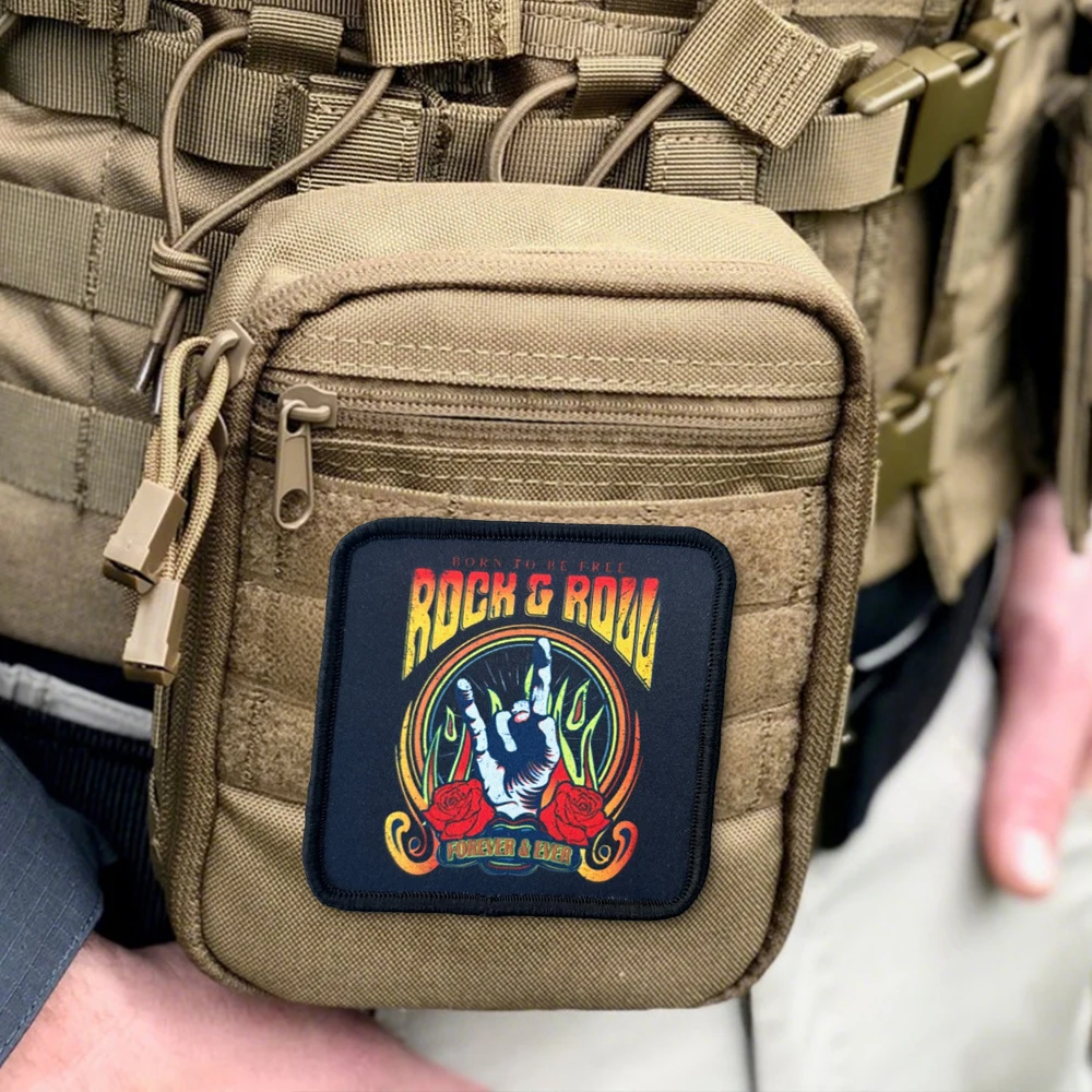 Parche táctico ROCK & ROLL Morale, apliques de estilo Rock, parches militares de bucle de gancho para accesorios de ropa, pegatinas para mochila1.Debido a las diferentes resoluciones de los dispositivos electrónicos, el color puede ser ligeramente diferente al color real.