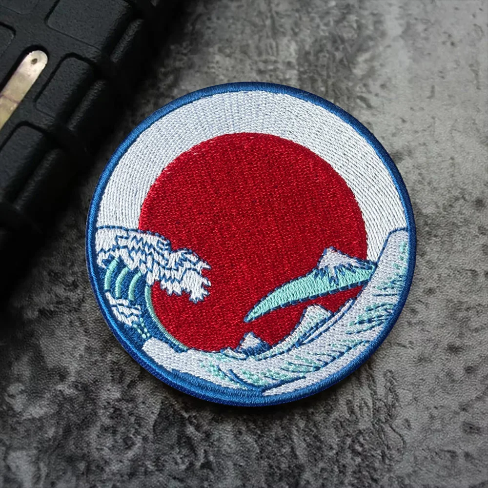 Parche táctico japonés para sol y ondas enormes, parches de bucle de gancho, insignia militar, pegatinas para mochila Chevron, accesorios de apliques