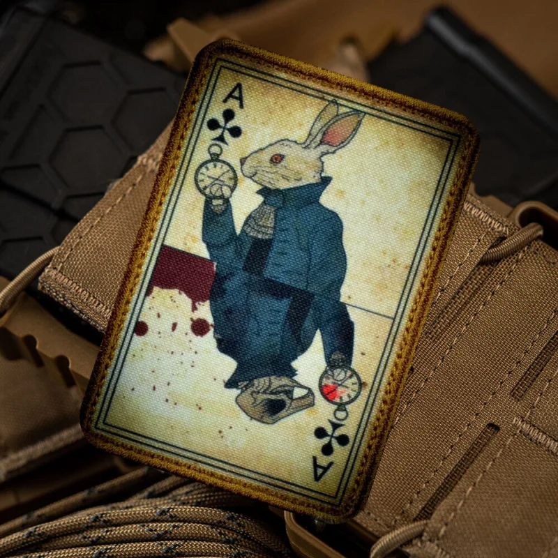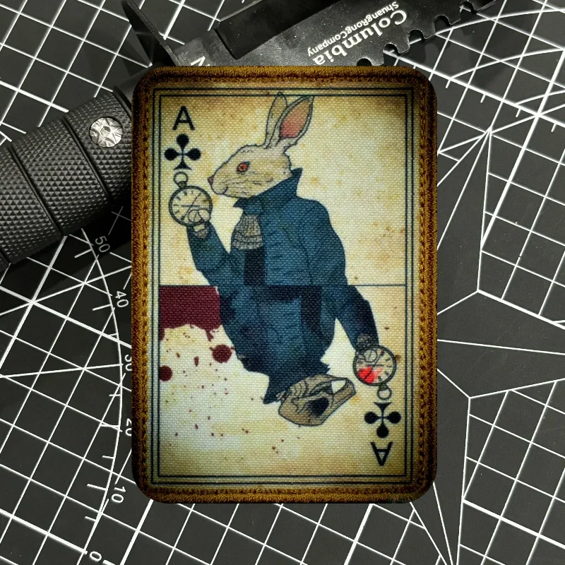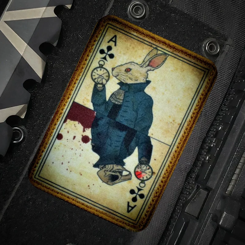Parche táctico de moral "The White Rabbit Ace", emblema de gancho y bucle impreso, insignia militar, brazalete de combate, pegatinas para mochila