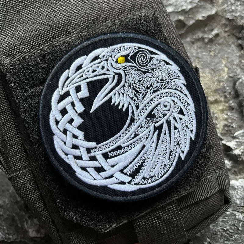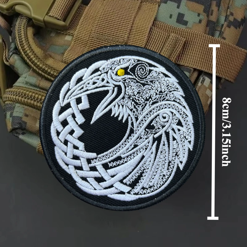 Parche táctico de moral vikinga, símbolo escandinavo, bordado de cuervo, emblema de gancho y bucle, insignia militar, brazalete, pegatinas para mochila