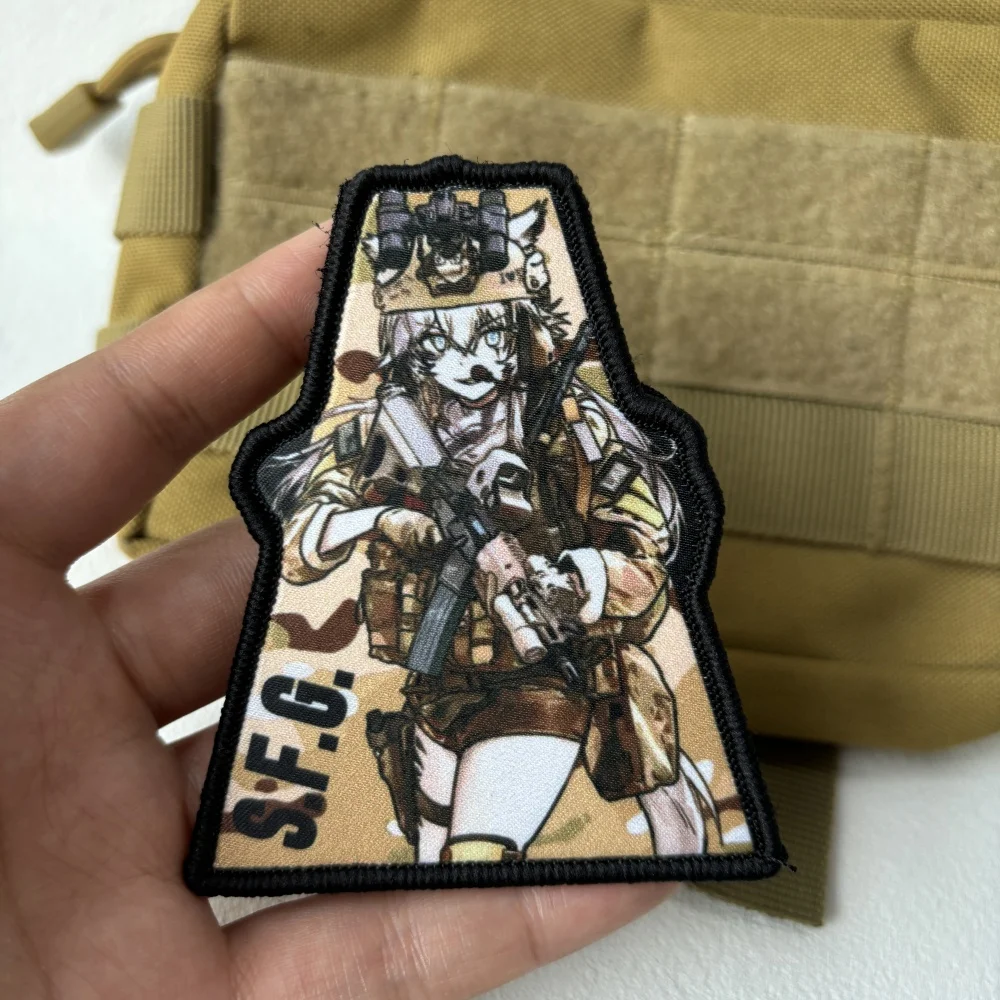 Parche táctico de Morale de Ark of Tomorrow, brazalete del ejército militar, parches de gancho y bucle impresos de Chica de Anime para ropa, pegatina para mochila