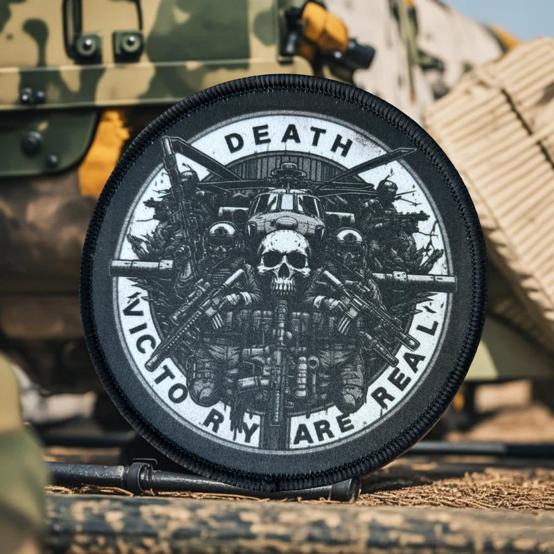 Parche táctico MORATH AND VICTORY ARE REAL Morale, emblema de gancho y bucle con estampado de calavera, insignia militar, brazalete de combate, pegatinas para mochila
