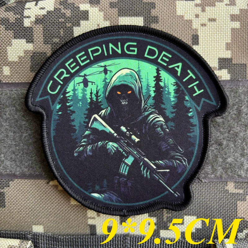 Parche táctico de muerte rasante, parches de impresión del ejército, gancho y bucle, insignia de moral de soldado Ranger, brazalete militar, pegatina para mochila