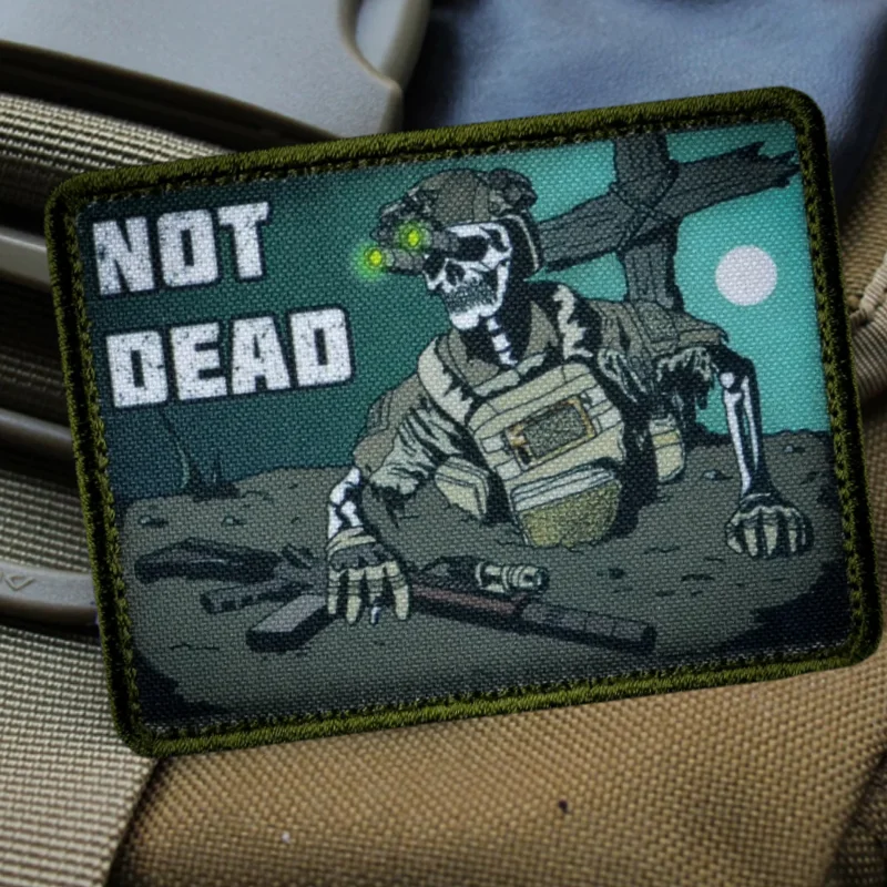 Parche táctico "NO DEAD", calavera de la muerte, Cruz, lápida, moral, parches Airsoft del ejército, brazalete militar, mochila, pegatina impresa