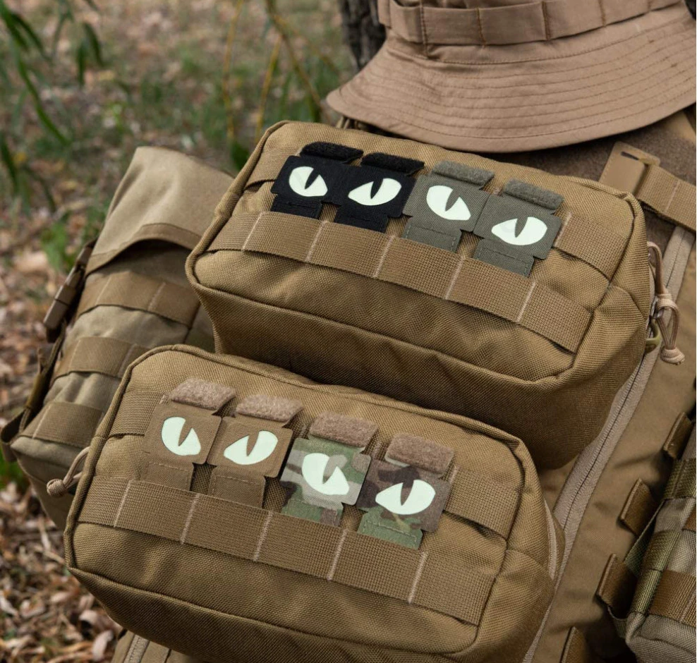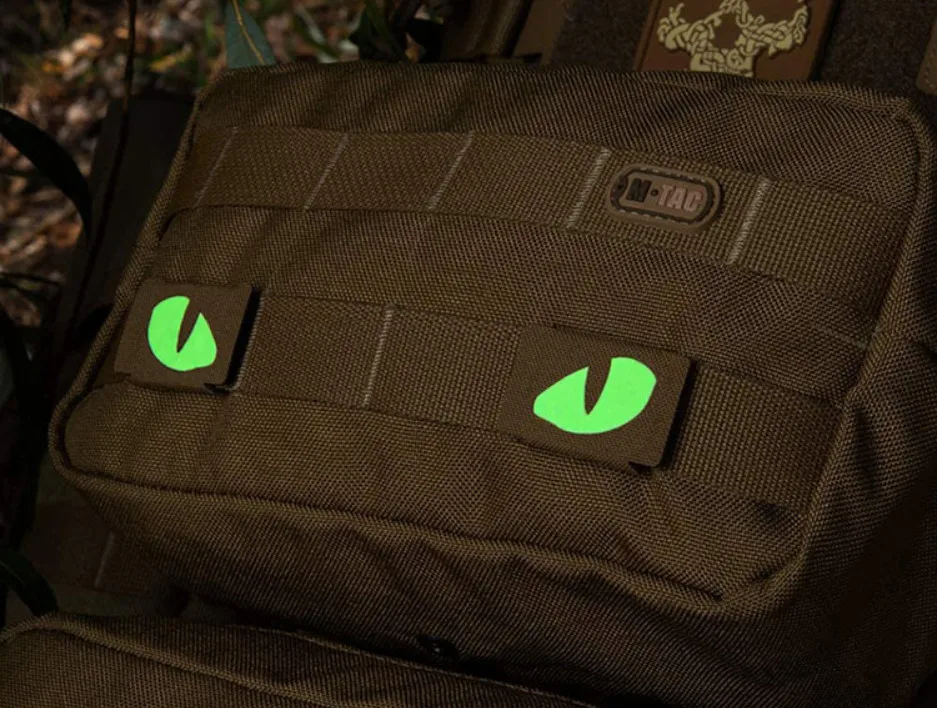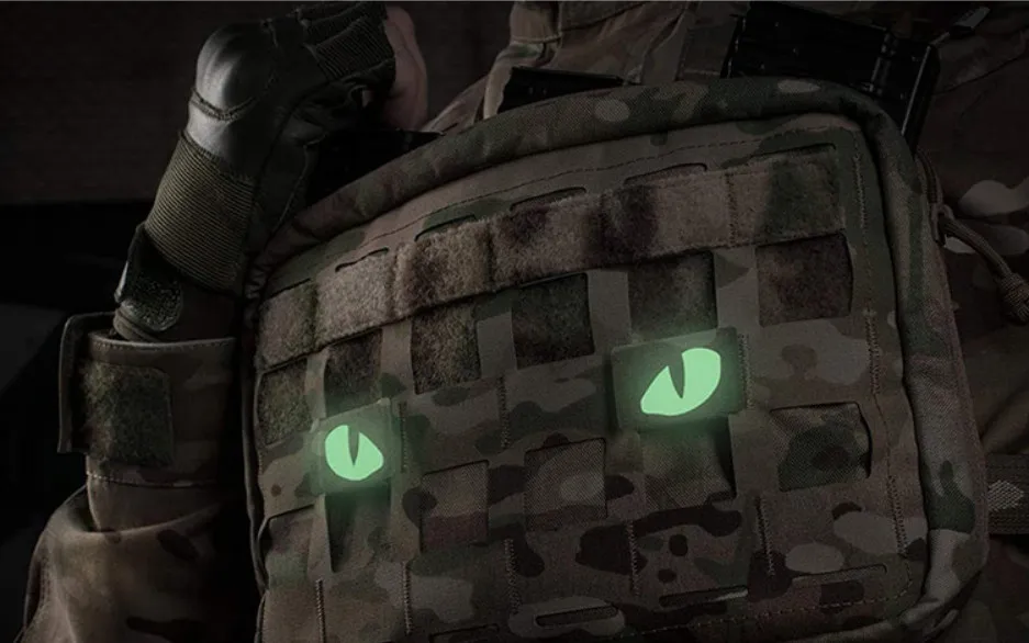 Parche táctico de ojos de gato, insignia de apliques de etiqueta que brilla en la oscuridad, combate militar, hebilla de bucle para casco, bolsa, chaqueta, uniforme, 1 par