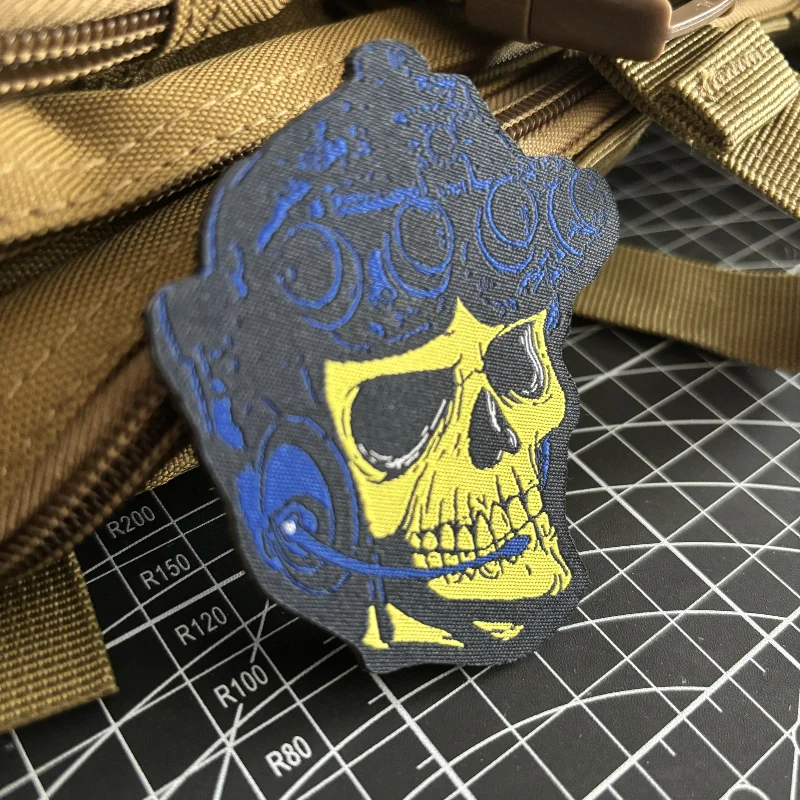 Parche táctico de operador de insignia de moral de Commander Skeletor, parches tejidos de gancho y bucle para ropa, brazalete militar, pegatina de mochila