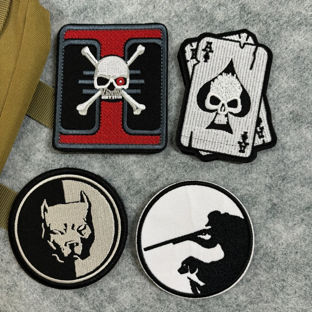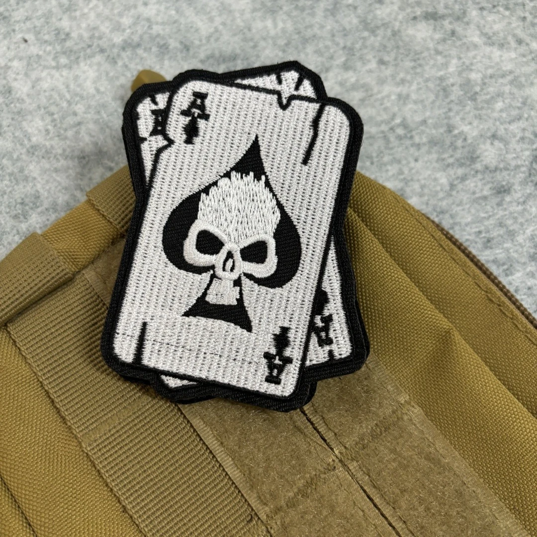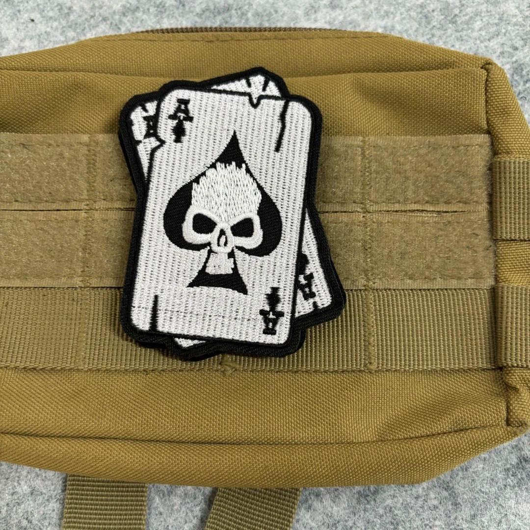 Parche táctico para perro Hunter y K9, tarjeta de esqueleto de Aces, parche bordado de gancho y bucle, brazalete, insignia de moral militar, pegatinas para mochila