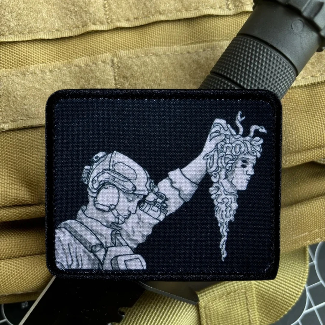 Parche táctico "Perseus, Heads Are Rolling" Insignia de moral Brazalete militar Parches de gancho y bucle Ropa Mochila Etiqueta impresa