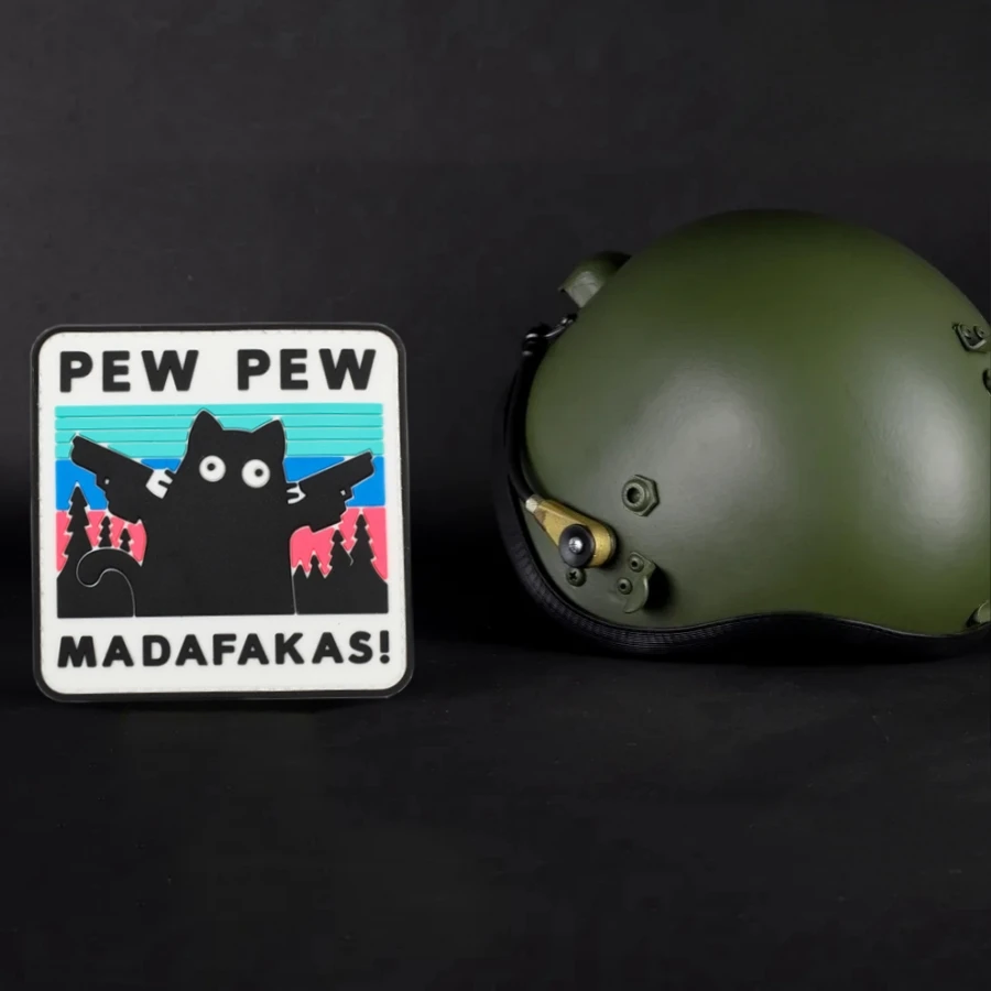 PEW MADAFAKAS parche táctico Pew Cat Morale insignia PVC gancho y bucle parches militar ejército pegatina para mochila sombreros
