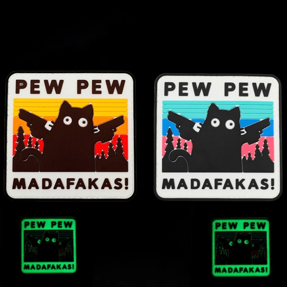 PEW MADAFAKAS parche táctico Pew Cat Morale insignia PVC gancho y bucle parches militar ejército pegatina para mochila sombreros