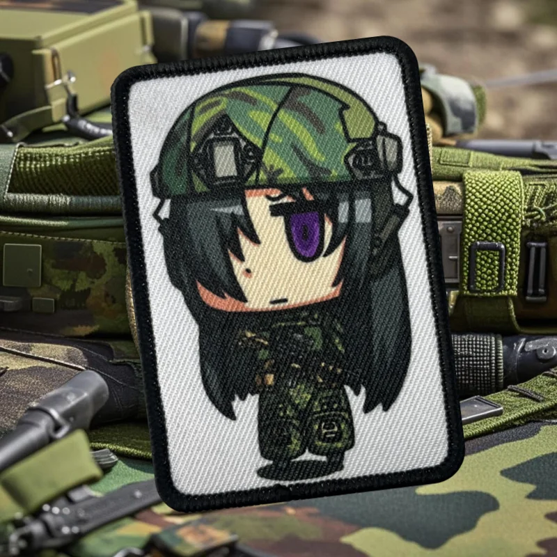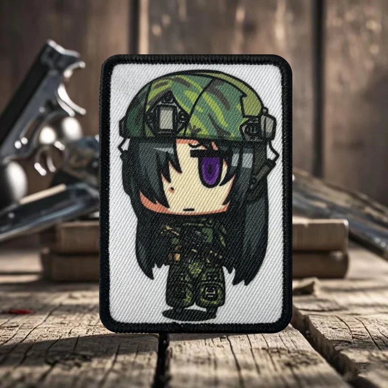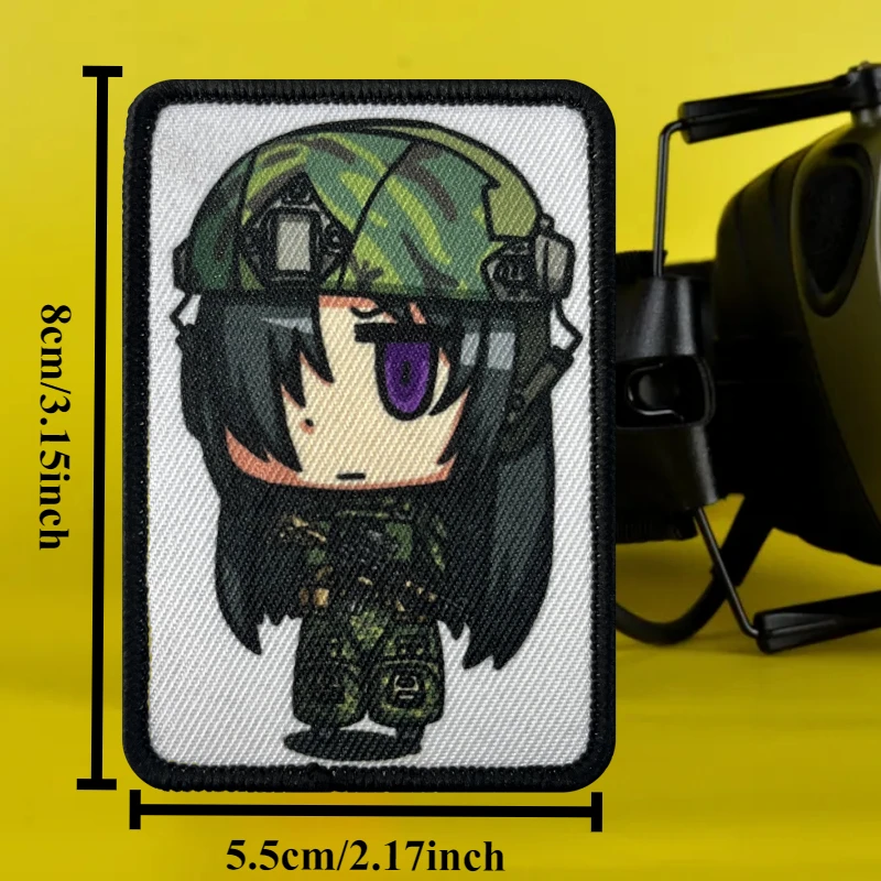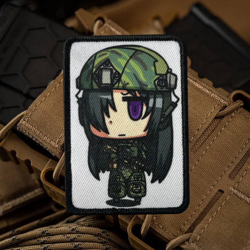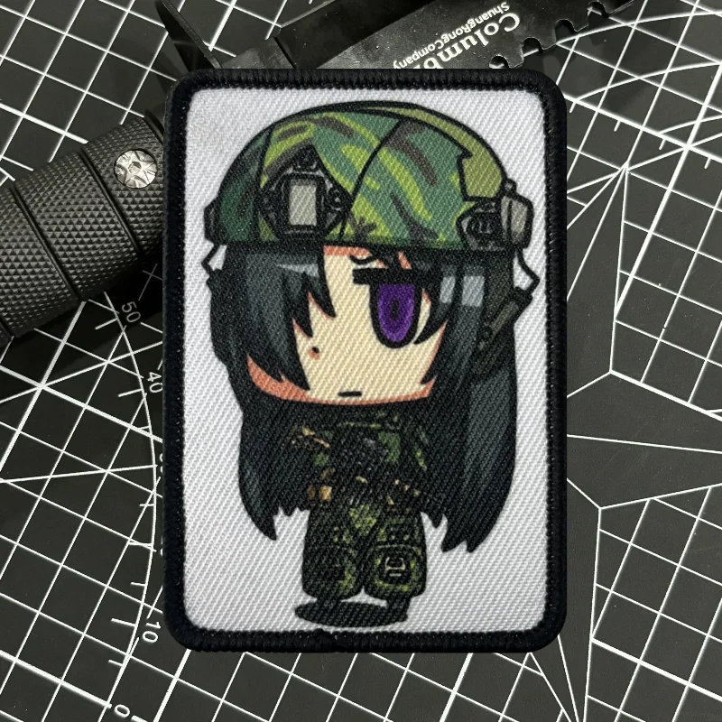 Parche táctico de primera línea para niñas, versión Q, parche de gancho y bucle impreso de Anime, insignia de moral militar, brazalete, mochila, chaleco, pegatinas