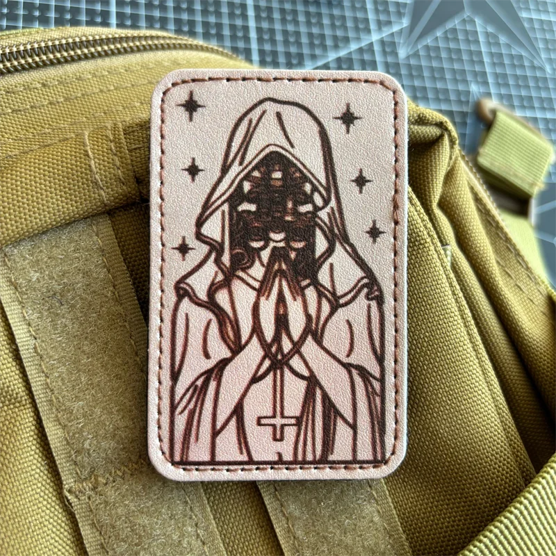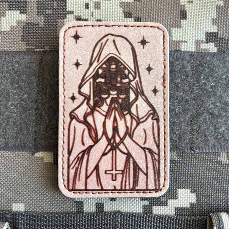 Parche táctico de PU para soldado de sacerdote, insignia de moral de cuero con gancho y bucle, parches de guerrero del ejército, brazalete militar, mochila, pegatina de muerte