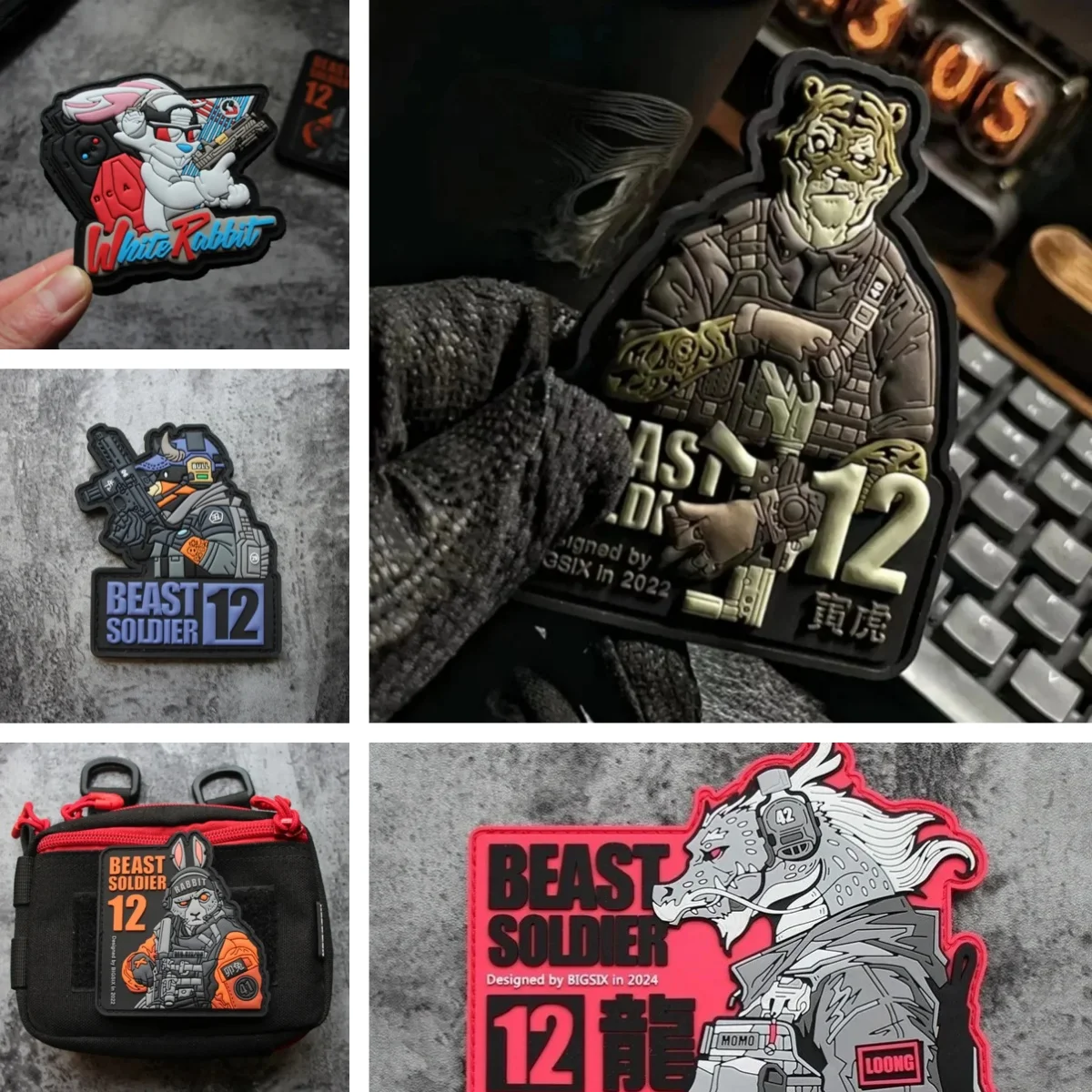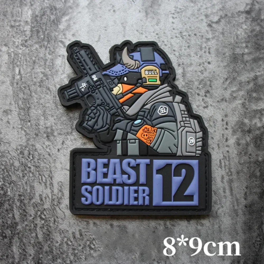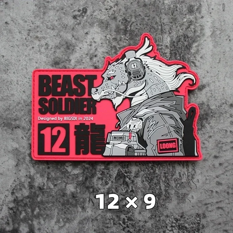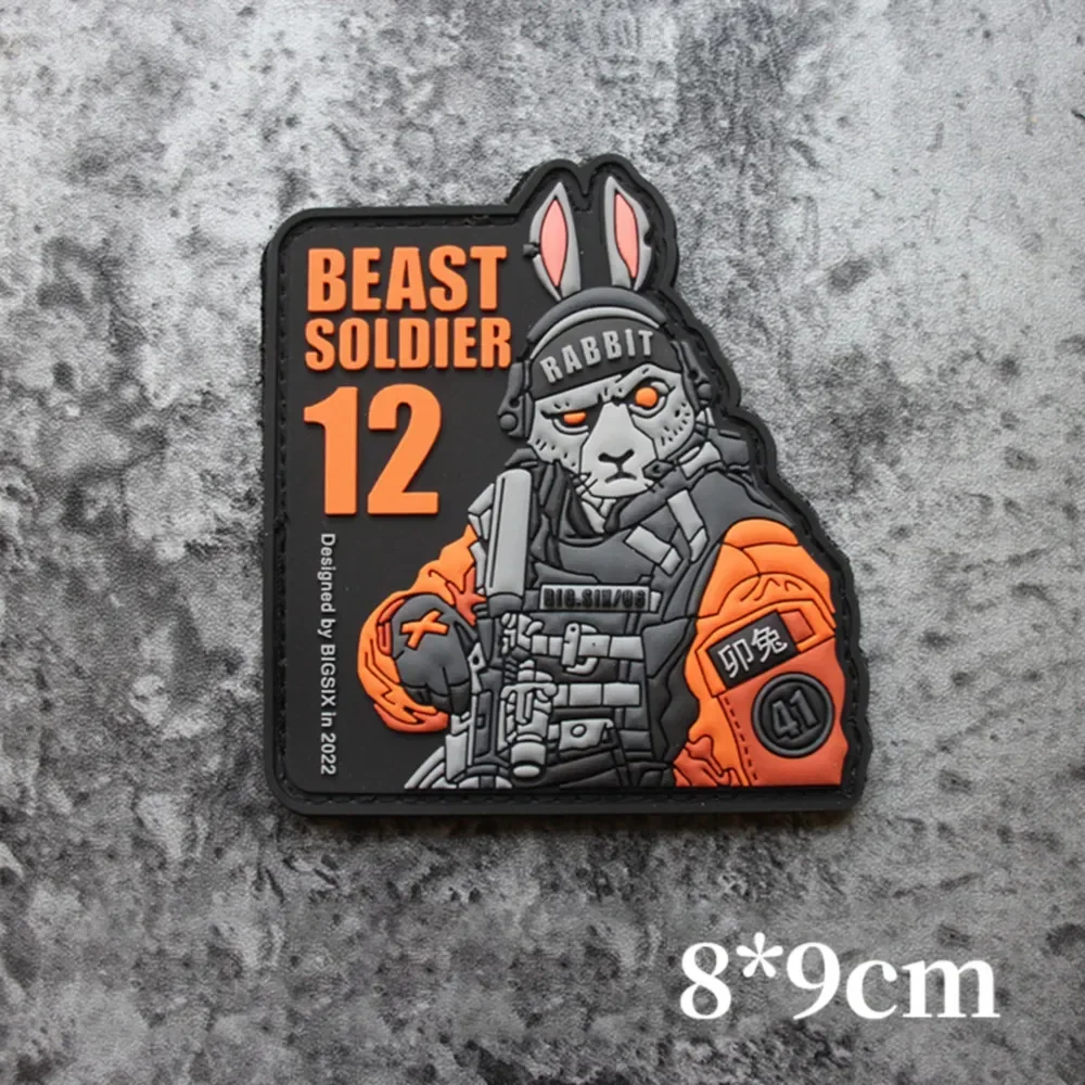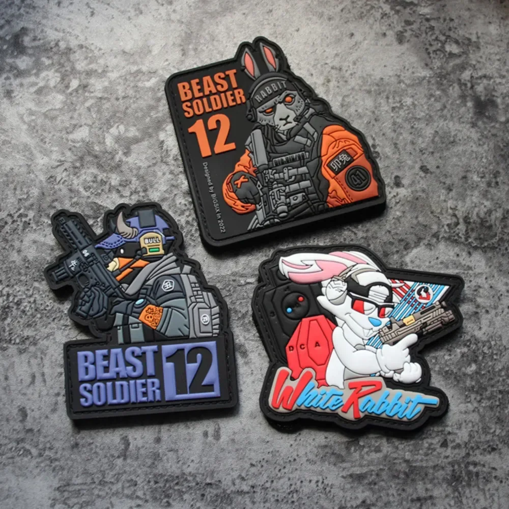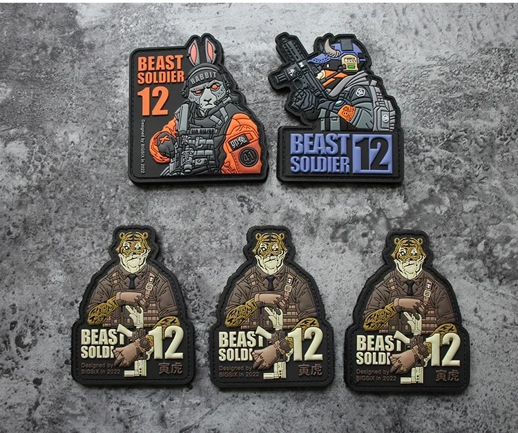 12 parches tácticos de PVC con letrero de animales, parches de gancho y bucle, brazalete militar de conejo, tigre, dragón, perro, moral, pulsera en mochilacaracterística:
