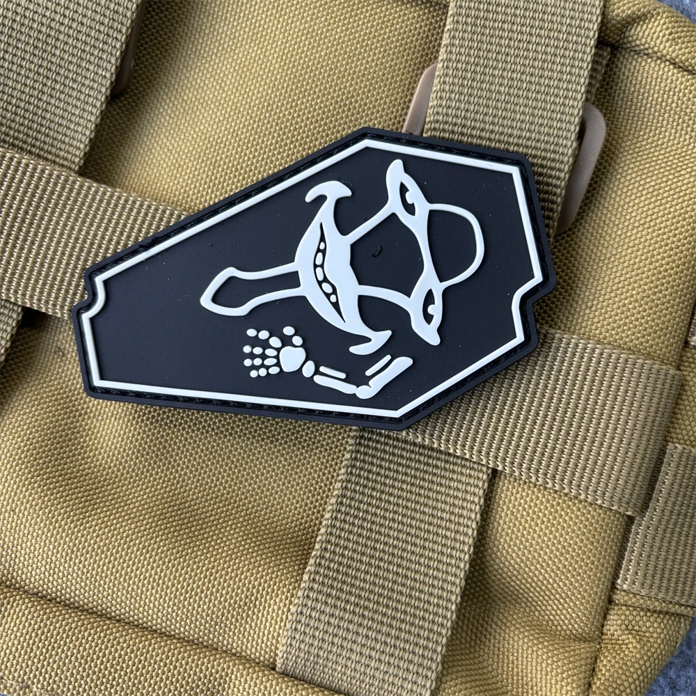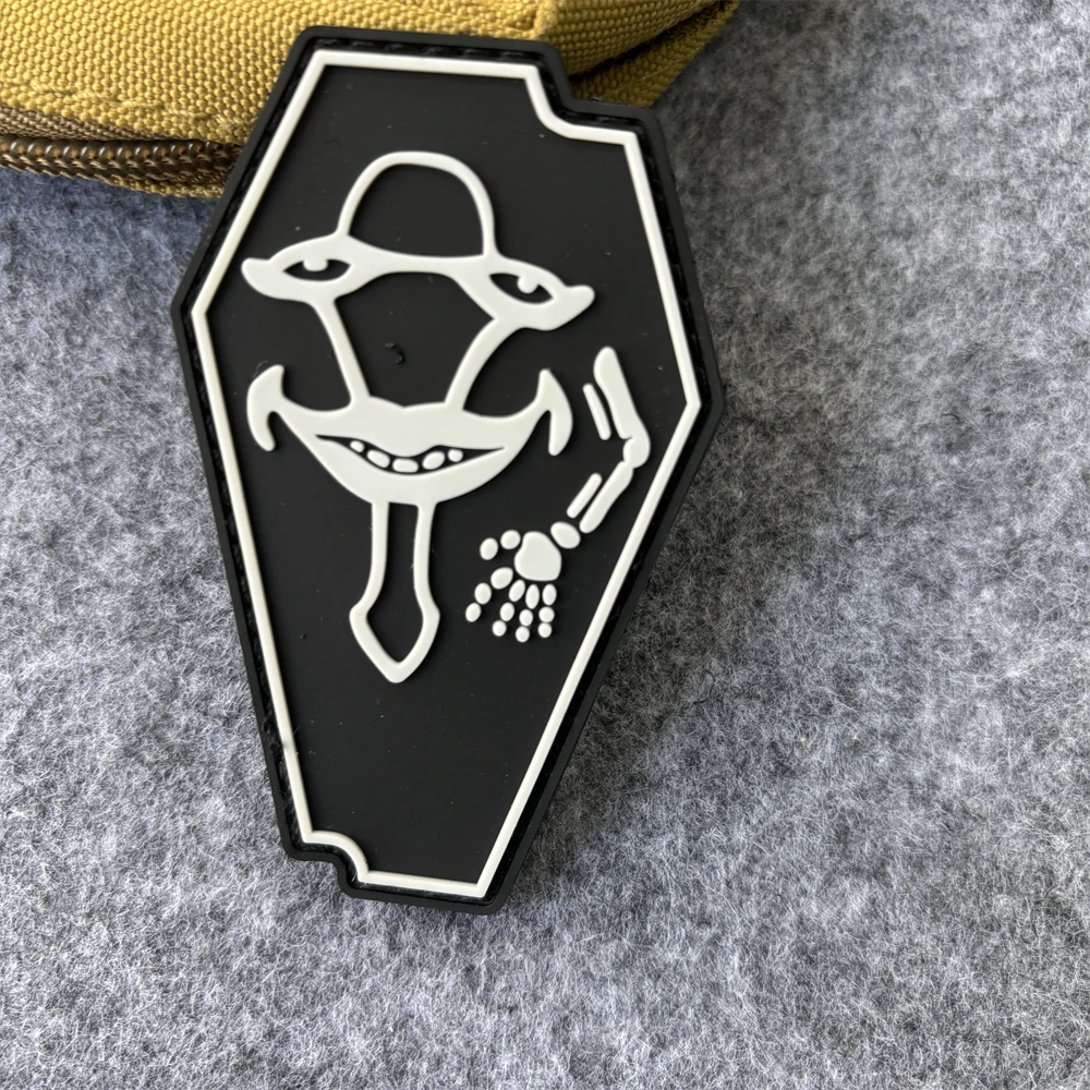 Riendo ataúd táctico PVC parche calavera 3D gancho y bucle parches en ropa esqueleto militar insignia de moral brazalete mochila pegatina